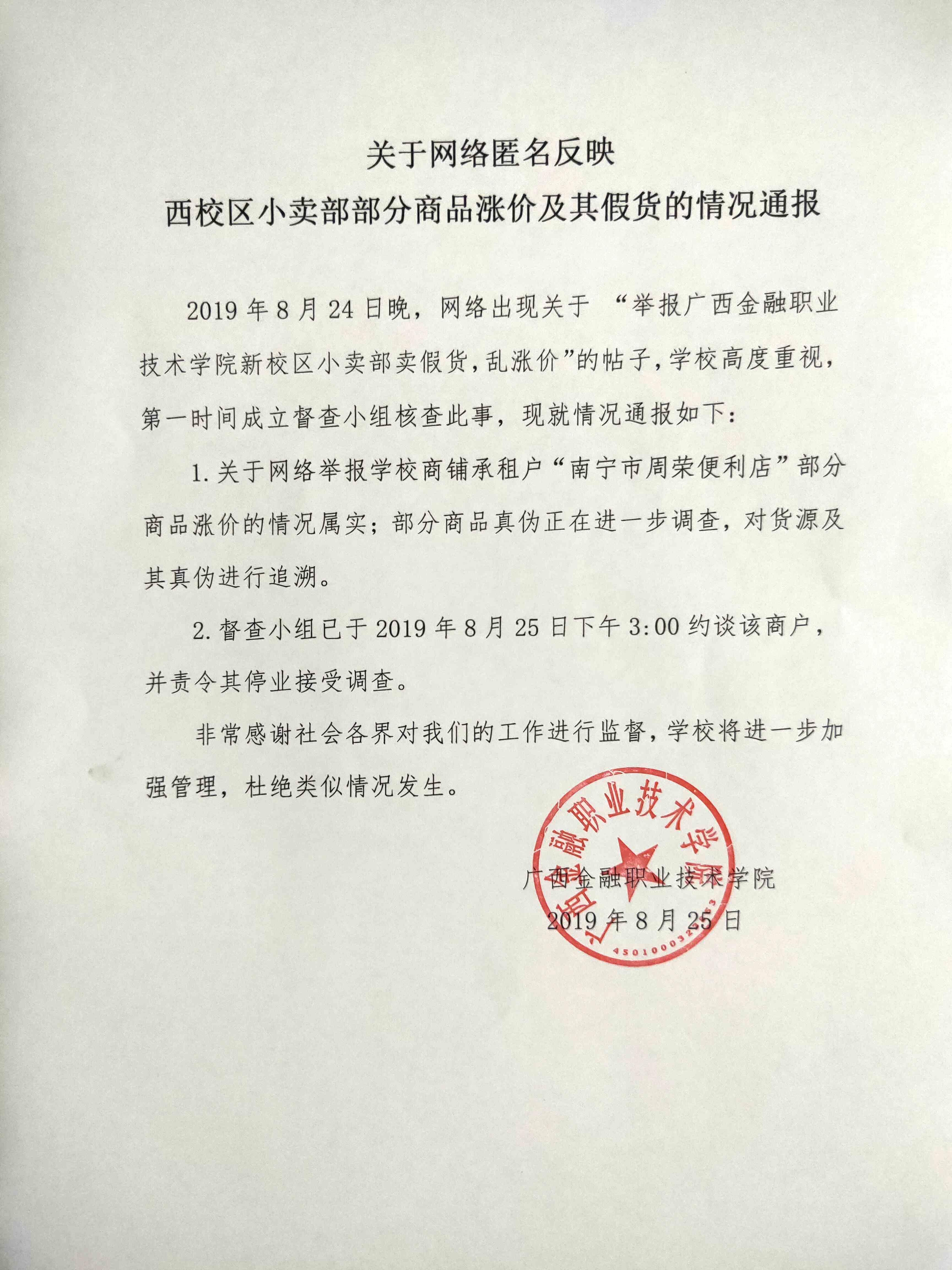 關于網絡匿名反映西校區小賣部部分商品漲價及其假貨的情況通報