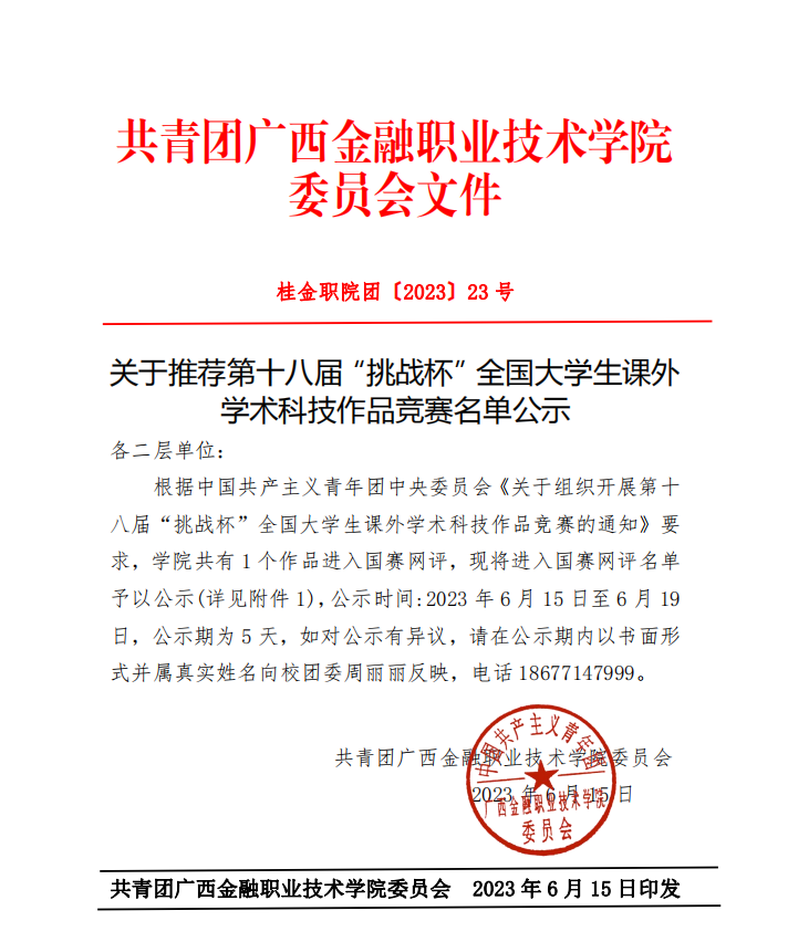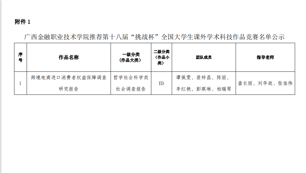關于推薦第十八屆“挑戰杯”全國大學生課外學術科技作品競賽名單公示