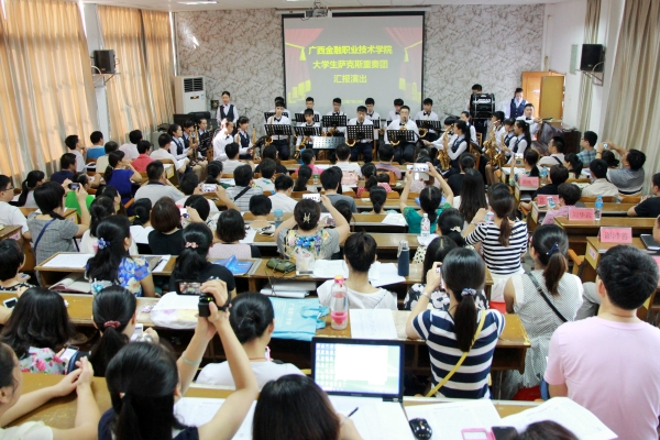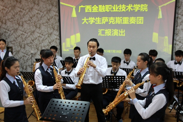 據(jù)悉,本樂團(tuán)共分為高音部、中音部、次中音部和上低音部4個(gè)聲部,由24名熱愛音樂、崇尚音樂的學(xué)生組成,是廣西第一支薩克斯重奏團(tuán)。