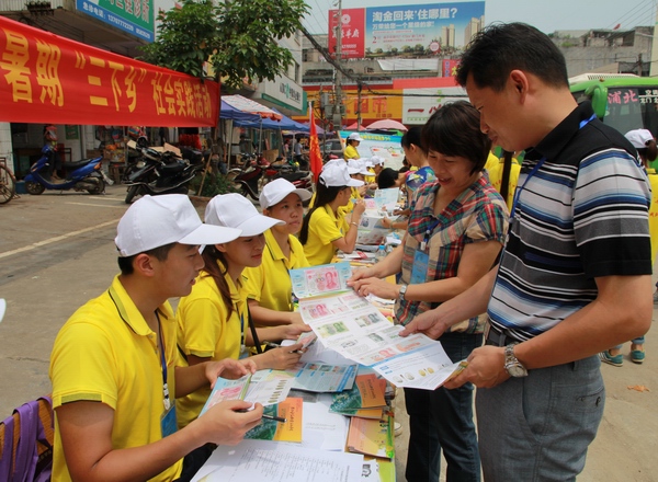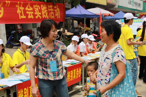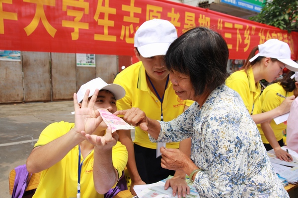 期間,覃書記一行也親自參與到我院開展的點鈔技能、辨別真?zhèn)吴n、金融防范知識、社會經(jīng)濟狀況調查等志愿服務項目,并深入宿舍、食堂了解關心志愿服務隊生活。在聽取了我院志愿者服務隊開展工作情況匯報后,她充分肯定了服務隊在特色活動工作上取得的成效。覃書記指出,三下鄉(xiāng)是一次很寶貴的社會實踐體驗,經(jīng)過親身體會會讓人變得更加成熟穩(wěn)重,希望全體隊員們要大力發(fā)揚不怕苦不怕累的優(yōu)良作風,珍惜機會,真正把社會實踐活動做好做實。