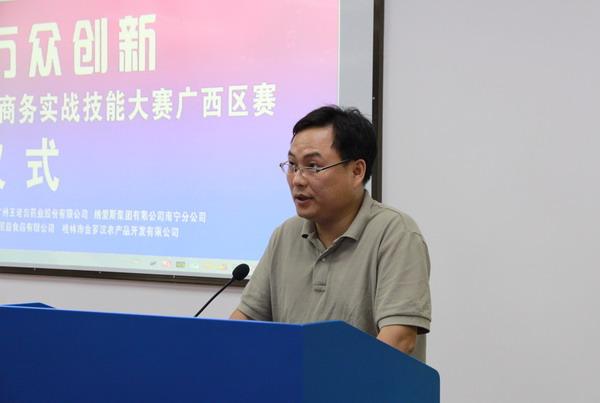 自治區(qū)教育廳職成處副處長萬鋒鋒宣布“2015年‘王老吉杯’第三屆全國電子商務實戰(zhàn)技能大賽廣西區(qū)賽”正式啟動。