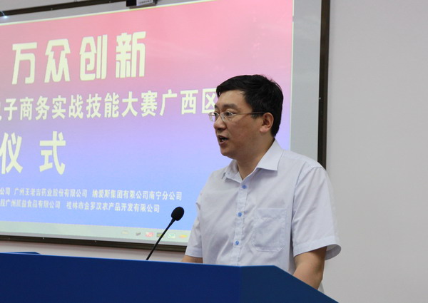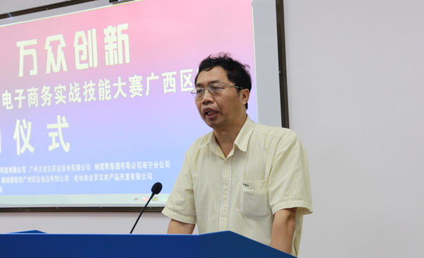 隨后,自治區(qū)商務廳電子商務處處長助理蔣侃,廣西電子商務協(xié)會會長黃光強以及企業(yè)代表分別從國家對電子商務發(fā)展的戰(zhàn)略模式,我區(qū)電子商務發(fā)展情況及校企合作構(gòu)想等方面作了發(fā)言。