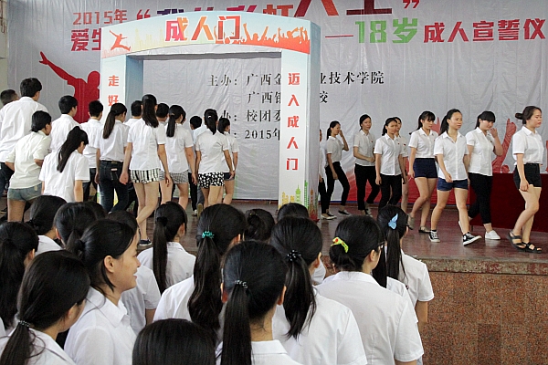 為貫徹落實(shí)“我的中國夢(mèng)”主題教育實(shí)踐活動(dòng),激發(fā)學(xué)生愛國主義精神,強(qiáng)化學(xué)生成人意識(shí)和責(zé)任意識(shí),5月26日下午,以“尊師愛生,成人之美”為主題的2015年愛生節(jié)暨“我的彩虹人生”——18歲成人宣誓儀式在我校大禮堂內(nèi)隆重舉行。黨委副書記、紀(jì)委書記陳明健,副校長盧華東,各科室領(lǐng)導(dǎo)以及近六百名年滿十八周歲的學(xué)生參加了宣誓儀式。儀式由辦公室主任韓蓓麗主持。