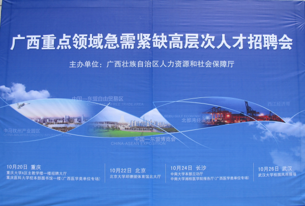 10月19日至27日,廣西金融職業技術學院黨委書記覃艷娟、院長沈立君率人事處有關負責人一行5人,分赴重慶大學、北京大學、中南大學、武漢大學等四所“985”高校參加2014年廣西重點領域急需緊缺高層次人才招聘會。