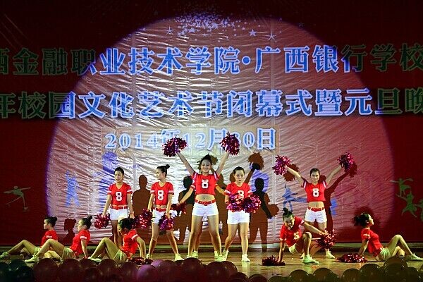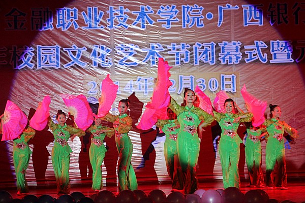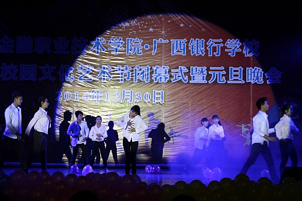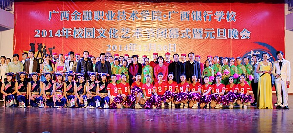 12月30日晚8時,“廣西金融職業技術學院、廣西銀行學校2014年校園科技文化藝術節閉幕式暨2015年元旦文藝晚會”在大禮堂激情上演。學院覃艷娟書記,學院院長、廣西銀行學校校長沈立君等領導親臨現場欣賞了晚會,出席晚會的還有廣西金融職業技術學院、廣西銀行學校全校師生、兄弟學校的代表。