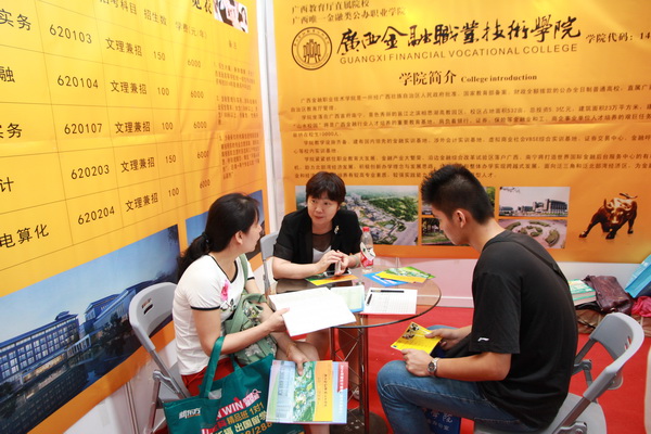 2014年6月24—25日在南寧國際會展中心召開的廣西高考咨詢會上,廣西金融職業技術學院作為廣西高校的一名新兵,深受考生及家長的歡迎。兩天會展期間,校長沈立君親自帶隊,咨詢會現場熱烈,發放招生宣傳冊10000多份,接待咨詢1100多人次,接受現場報名149人,較周邊職業院?;鸨M屑娂婎A測,我院將是今年招考工作中殺出的一匹黑馬。