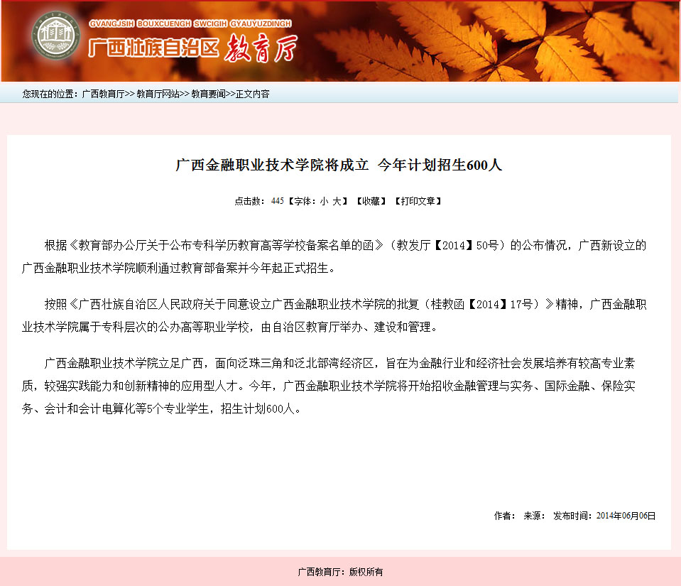 2. 廣西壯族自治區教育廳的報道。【點擊進入】