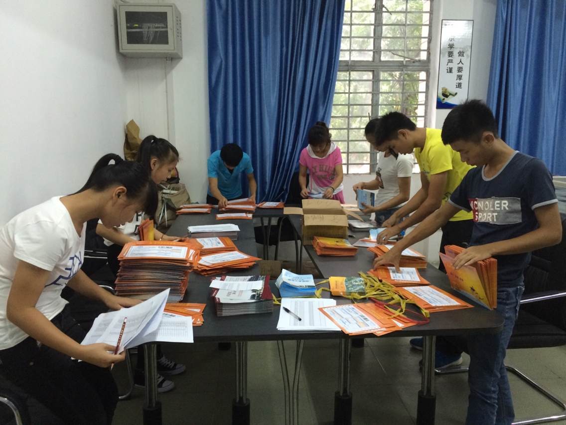 工作人員分發(fā)通知書