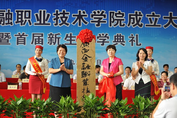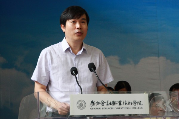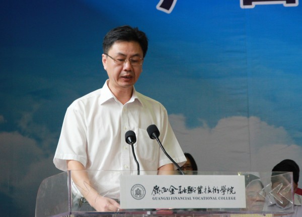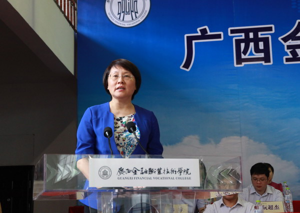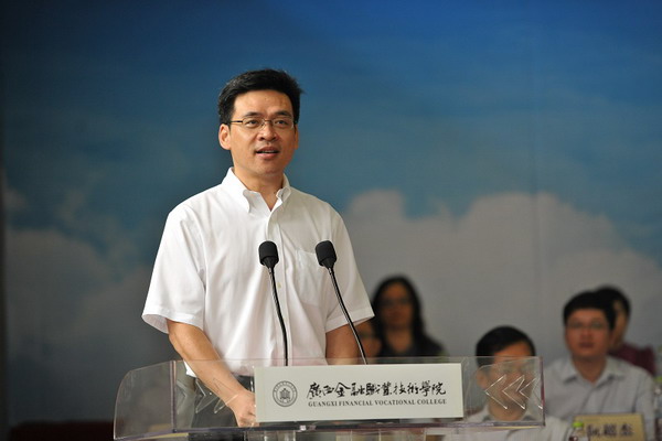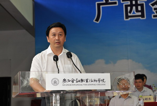 自治區人民政府副秘書長吳建新首先宣讀廣西金融職業技術學院成立批復文件