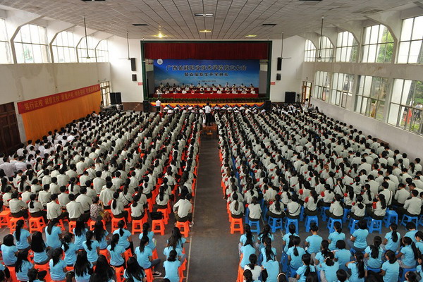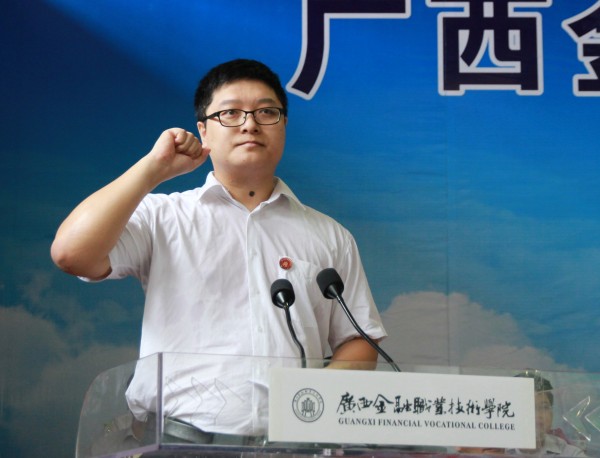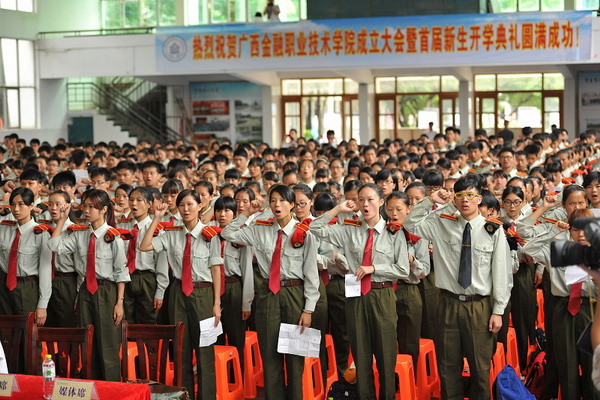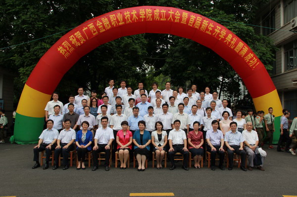 9月20日,廣西金融職業技術學院成立大會暨首屆新生開學典禮在學院大禮堂隆重舉行,自治區人民政府副主席李康,自治區人民政府副秘書長吳建新,自治區高校工委書記、教育廳廳長秦斌,全國金融職業教育教學指導委員會秘書長、中國金融培訓中心主任馬玉蘭,中國人民銀行南寧中心支行副行長蘇陽等各大金融機構代表及校企合作單位代表、老干部代表出席本次大會。大會由學院黨委書記覃艷娟主持。