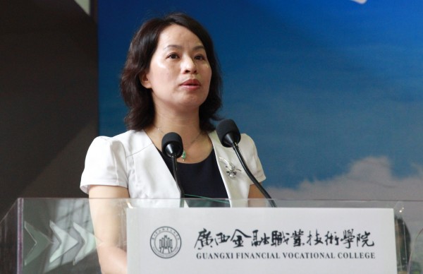 全國金融職業教育教學指導委員會秘書長、中國金融培訓中心主任馬玉蘭,中國人民銀行南寧中心支行副行長蘇陽、校企合作單位建設銀行廣西區分行副行長黃誠東相繼做了致辭。表示我院的成立一定會為廣西乃至全國的金融行業發展做出積極的推動作用,并對我院的建設及其發展前景給與了高度肯定。