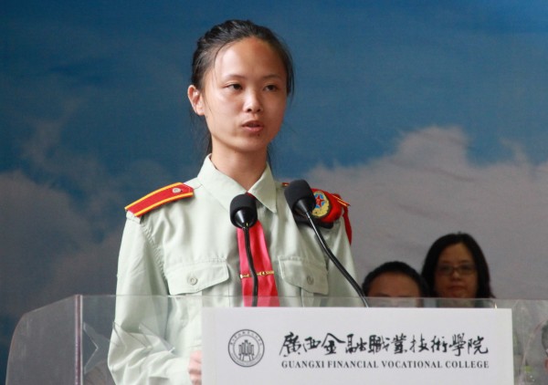 隨后,沈立君院長致歡迎詞。她向2014級的全體新同學表示最熱烈的歡迎和誠摯的謝意,向蒞臨會議的各位領導和嘉賓表示衷心的感謝。沈校長在講話中介紹,廣西金融 職業技術學院是廣西唯一一所金融類公辦職業學院,于今年1月獲自治區人民政府批準設立,并在今年高考中招收首屆學生606人。“學院將堅持高教性和職教性的統一、就業導向和全面發展的統一、人才培養和服務社會的統一,利用金融優勢,抓好產教融合與校企合作,爭取首屆畢業生簽約就業率達100%。