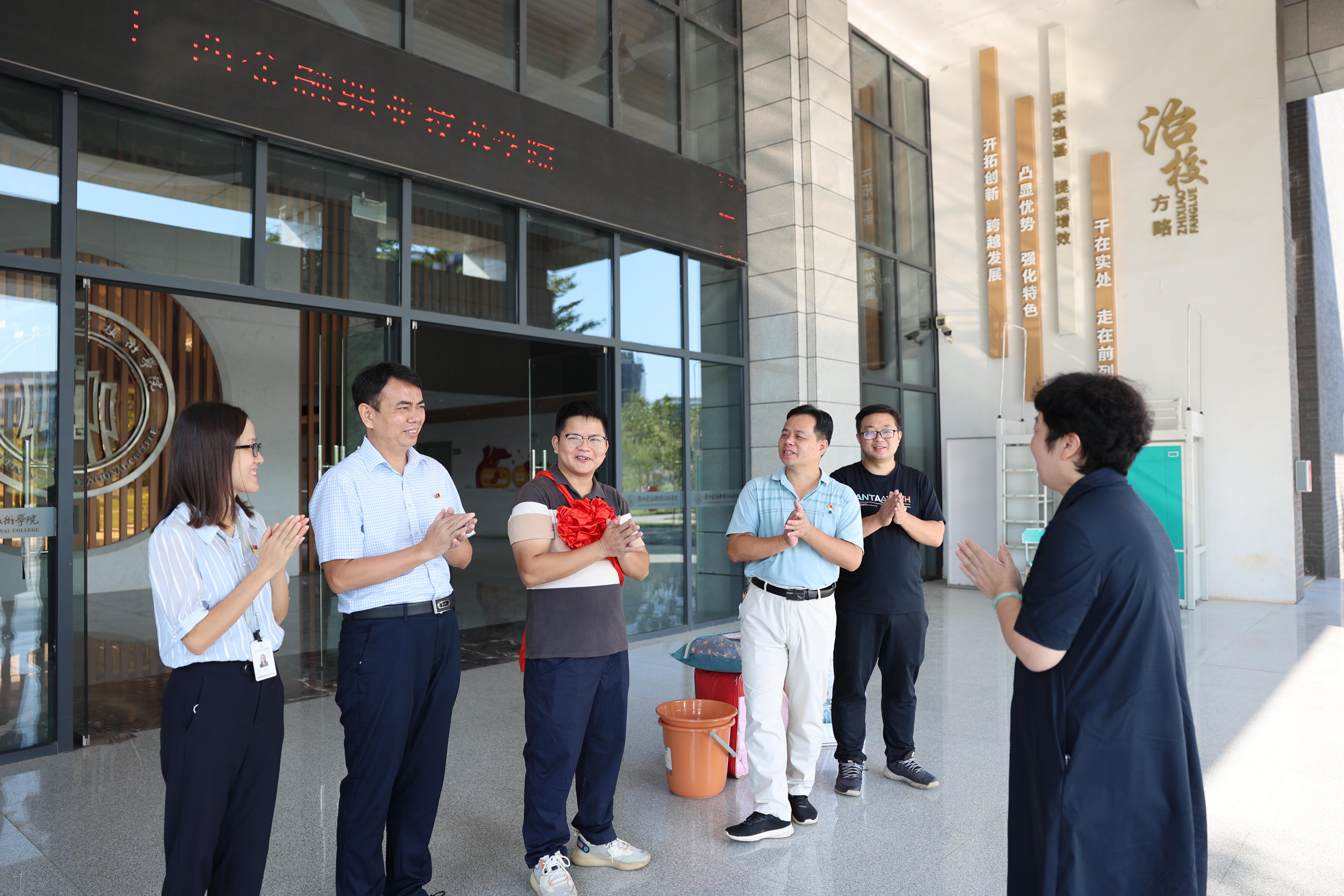 金秋九月,清風(fēng)送爽。9月5日上午8時(shí)30分,我校西校區(qū)行政辦公樓一樓大廳笑聲朗朗、暖意濃濃。在歡送龍有勝同志奔赴都安縣龍灣鄉(xiāng)新民村擔(dān)任駐村第一書(shū)記的現(xiàn)場(chǎng)上,學(xué)院黨委書(shū)記沈立君教授作了講話,她指出,在全國(guó)上下團(tuán)結(jié)一致相互攜手、踔厲奮發(fā),以高昂的斗志和飽滿的精神喜迎黨的二十大勝利召開(kāi)之際,龍有勝同志積極響應(yīng)自治區(qū)黨委組織部和學(xué)院黨委的號(hào)召,克服家中困難,主動(dòng)投入到國(guó)家鄉(xiāng)村振興這一宏偉大業(yè)之中,精神難得可貴,勇氣確實(shí)可嘉。