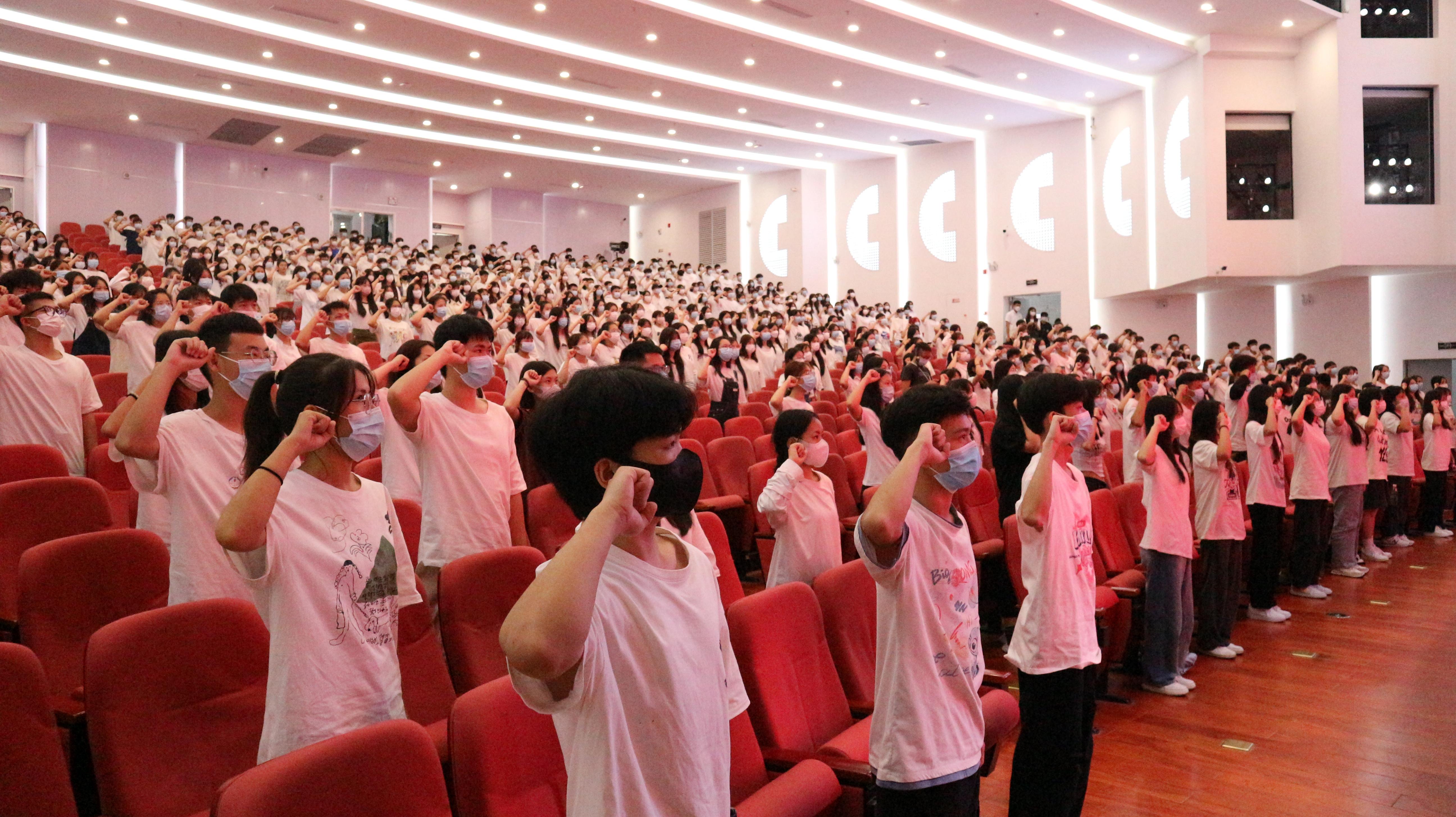 老生代表帶領全體新同學宣讀《入學誓詞》,開學典禮在全體新同學聲聲誓言中圓滿結束。