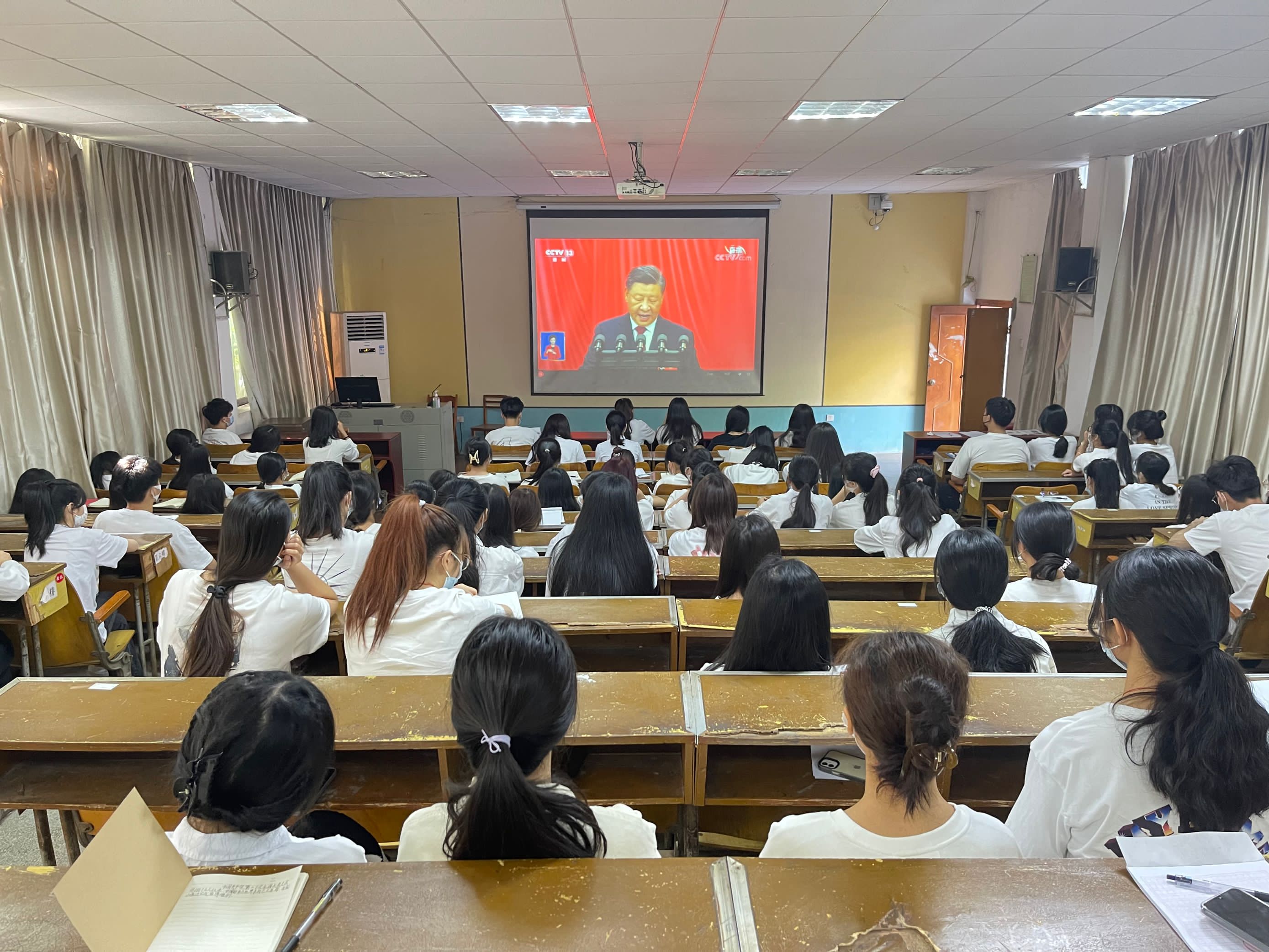 我校在東、西校區設置會場集中組織收聽收看中國共產黨第二十次全國代表大會開幕會現場直播。學校領導、全體黨員、各單位負責人及學生代表共600余人共同收看大會。會場內氣氛熱烈,師生們揮舞著黨旗、國旗和校旗,熱烈慶祝黨的二十大勝利召開。