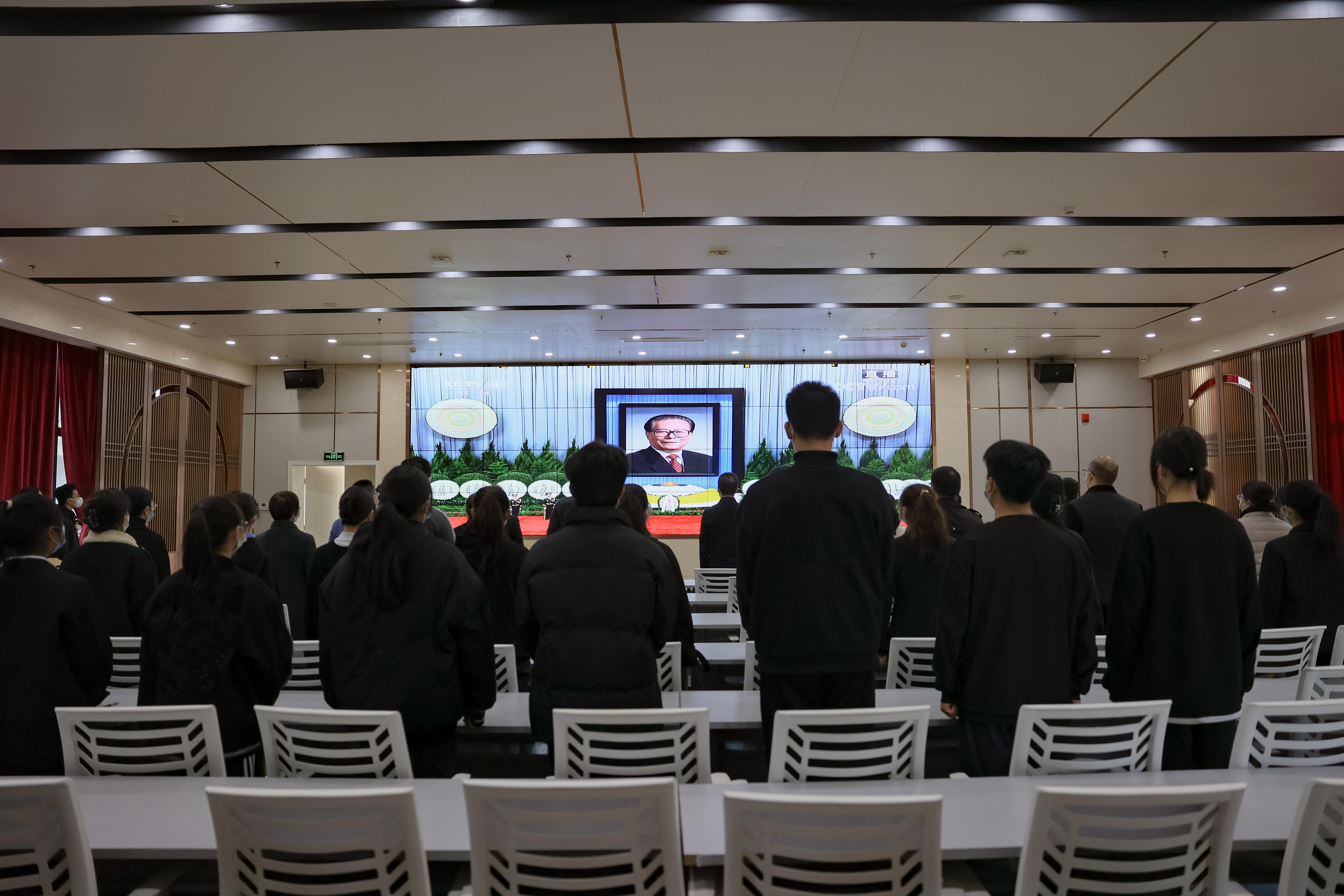 學校領導、各黨支部書記、各部門主要負責人、師生代表在西校區道德大講堂集中收聽收看了的江澤民同志追悼大會現場直播。其余師生自行收聽收看。哀樂響起,全體師生肅立,懷著悲痛的心情為江澤民同志默哀3分鐘。沉痛悼念這位全黨全軍全國各族人民公認的享有崇高威望的卓越領導人,緬懷江澤民同志的光輝業績,頌揚江澤民同志的偉大情操和崇高品質。