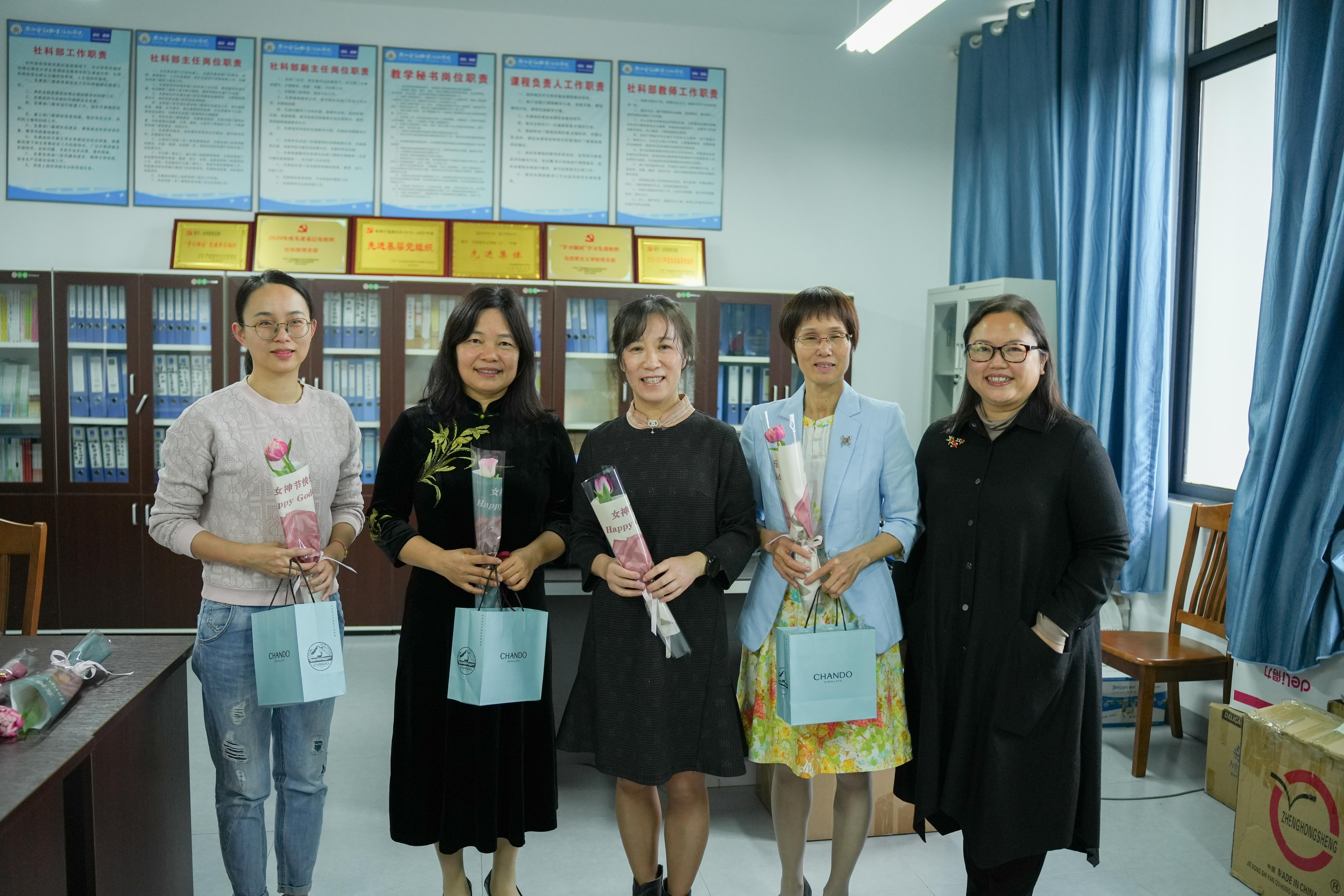 3月8日上午,學(xué)校領(lǐng)導(dǎo)、工會(huì)及女工委、各工會(huì)小組深入一線,為女教職工們送上鮮花、小禮物和濃濃的節(jié)日祝福。鼓勵(lì)和贊揚(yáng)女教職工愛(ài)崗敬業(yè)、甘于奉獻(xiàn),巾幗不讓須眉的豪情壯情。
