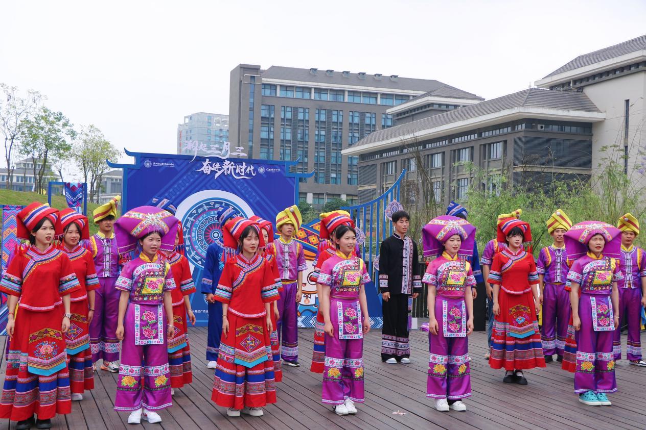 為全面學習貫徹黨的二十大精神,落實習近平總書記對廣西“五個更大”重要要求,進一步豐富校園文化活動形式,傳承和弘揚民族傳統文化。4月18日,我校在東、西校區舉行“潮起三月三 奮進新時代”三月三系列活動。學校黨委副書記、紀委書記劉華政,學校黨委委員、組織人事處副處長、校團委書記周海峰,黨委學生工作部、學生工作與招生就業處副處長唐雪濤,校團委副書記朱麗君、校團委及各系分團委教師代表出席此次活動。