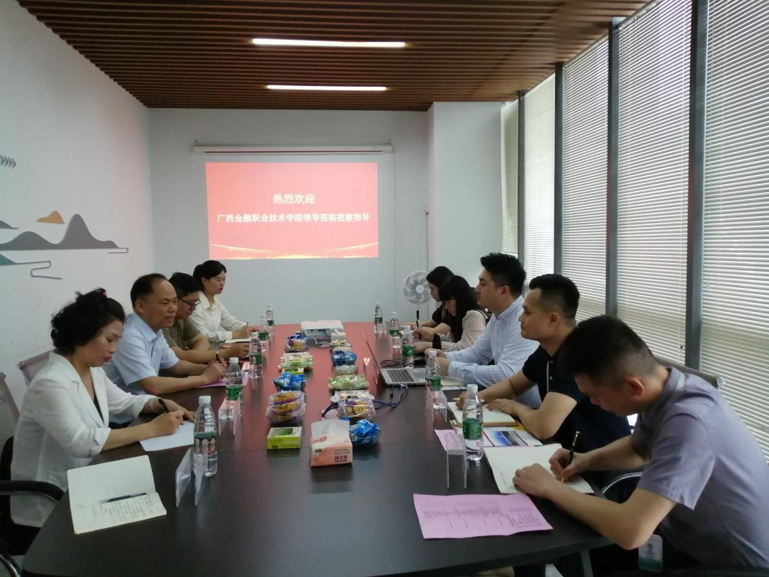 4月20日上午,學院副院長謝沛善帶領學生工作與招生就業處、金融系、投資與保險系相關就業工作負責人員一行7人,到福州啟聯信息咨詢有限公司南寧分公司(以下簡稱啟聯公司)開展訪企拓崗活動。啟聯公司總經理張龍輝、西南區域總監謝慶新、行政主管閉至尉等三人熱情接待了謝副院長一行。