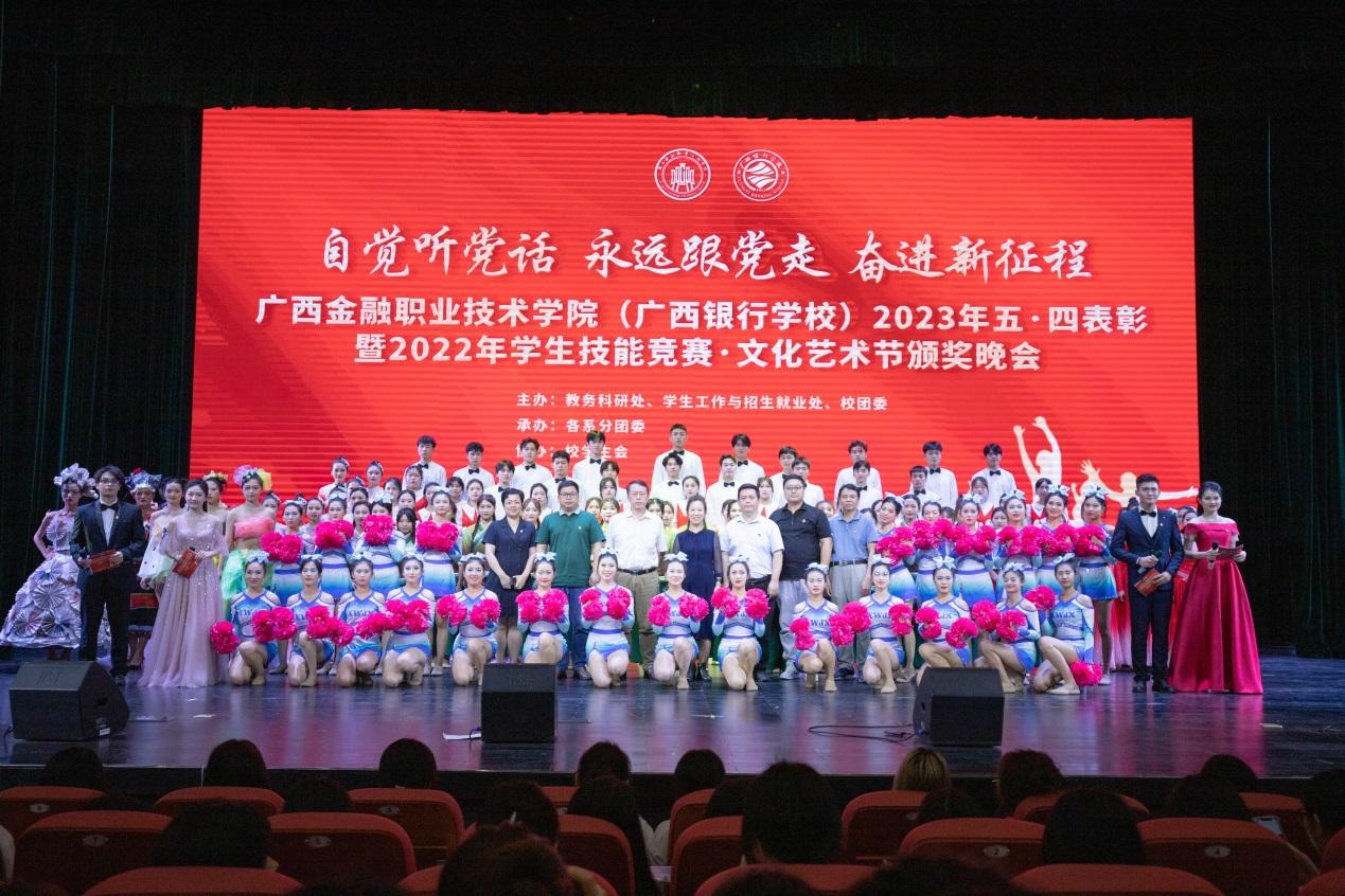 為深入學習宣傳黨的二十大精神,貫徹落實習近平總書記關于青年工作的重要思想,弘揚五四精神,充分發揮先進典型的示范引領作用,激勵各級團組織、團干部和團員踔厲奮發、創先爭優,5月4日晚上,我校在西校區國際會議中心隆重舉行2023年“五四”表彰暨2022年學生技能競賽·文化藝術節閉幕晚會。校黨委書記李高巖,校長莫海燕,校黨委副書記、紀委書記劉華政以及學校相關職能部門和各系部的領導和老師出席本次活動。在現場觀看本次晚會的還有各系部分團委負責人、師生代表共計1000余人。