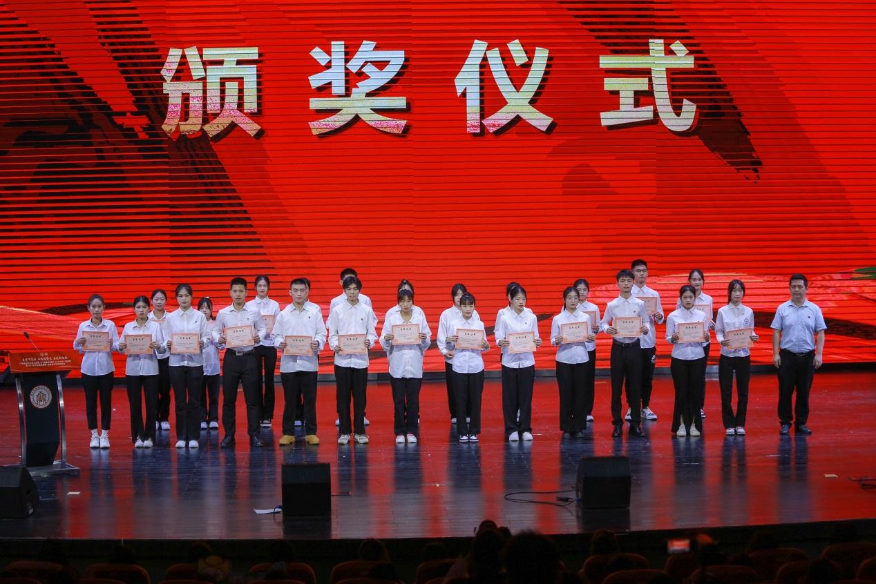 學校領導和相關職能部門領導分別為獲得2022年度五四評優先進集體、先進個人以及在2022年學生技能競賽·文化藝術節系列活動中取得優異成績的集體和個人進行頒獎。
