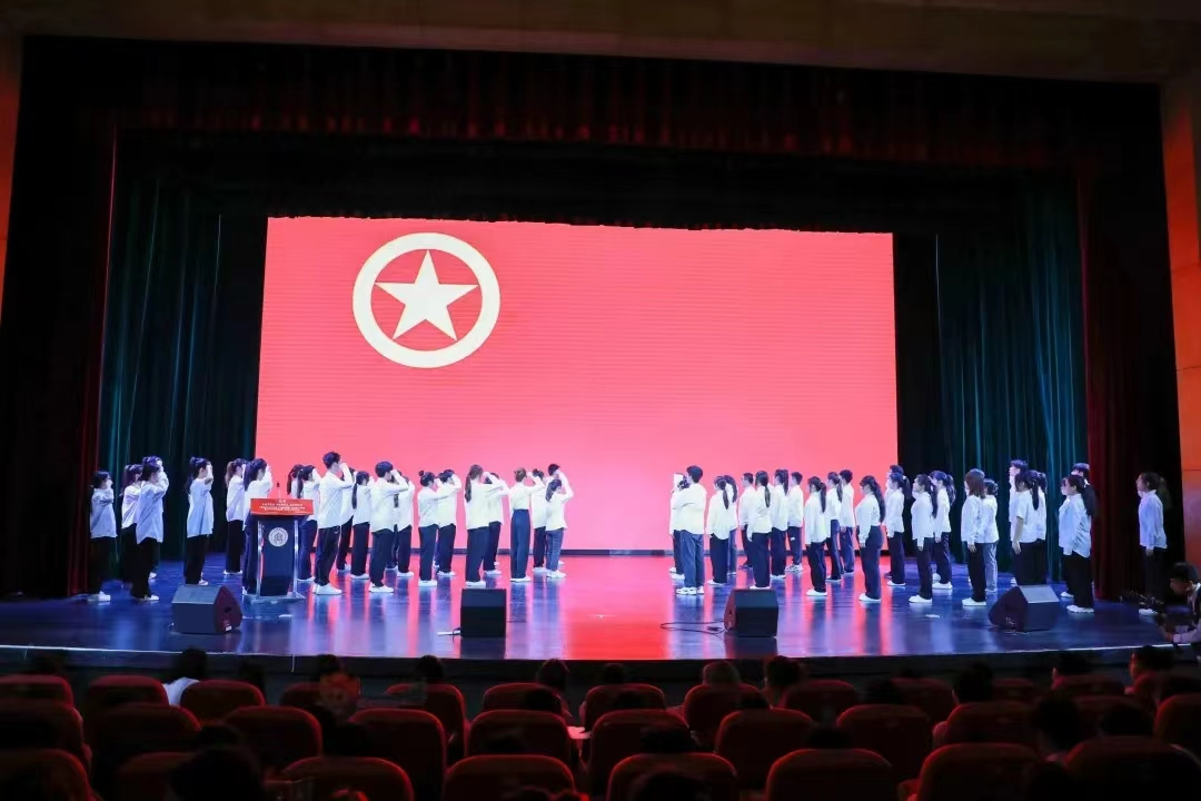 表彰儀式上還舉行了新團員入團儀式。校團委宣傳部部長李聞同學帶領新團員進行了宣誓。