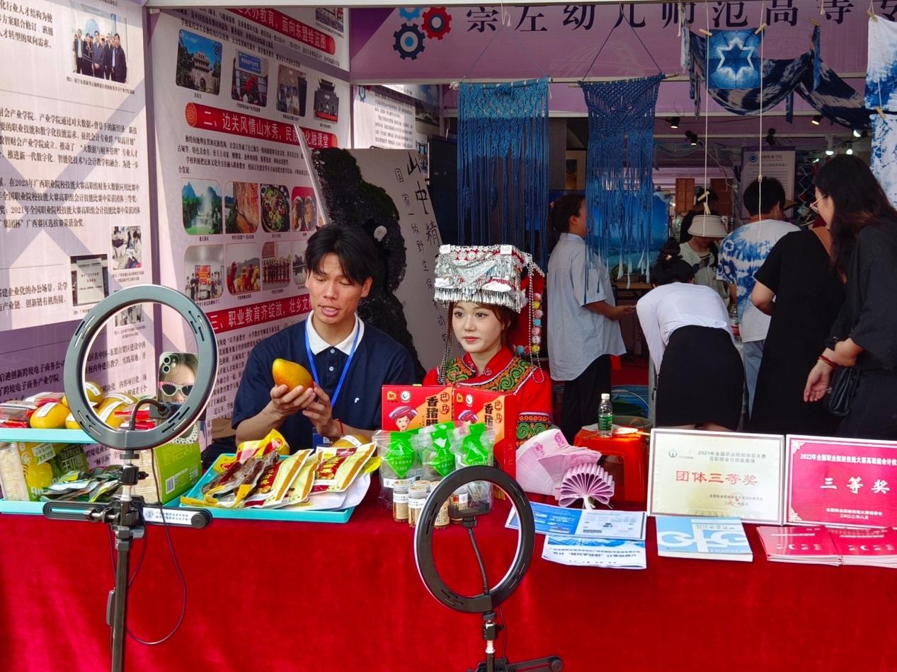 學院展示了近年來深化產教融合、校企合作和職教改革取得的成效,先后成立了財務共享、數智財會和跨境電子商務等多個產業學院。金融系以“智慧金融”為主題,展示了線上雙語教學資源和金融產教融合人才培養成果;會計系依托產業學院和現代學徒中心,以“雙高計劃”建設為抓手,深化產教融合,打造產教融合校企合作“共建共享共贏”的職教新典范;經濟管理系設計了“低碳生活 以物換物”的活動,以直播的方式向線上線下的觀眾介紹了我院合作的電商扶貧農產品,與參觀我院展區的師生互動。