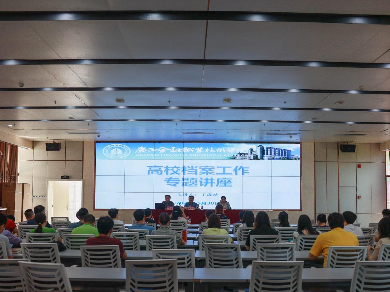 為了進一步加強我校檔案管理工作,推動檔案工作規范化開展,更好地服務于學校的建設發展目標及中心工作。5月30日,我校舉辦檔案工作專題講座,特邀請廣西民族大學管理學院二級教授,博士生導師,國家級檔案專家領軍人才丁海斌教授到我校作“如何做好數字時代的高校檔案工作”的專題講座。我校副院長潘大勝,各單位負責人、檔案管理員、行政工作人員、各系(部)行政秘書、教學秘書參加了培訓,黨委委員、黨政辦公室(國際交流處)副處長、黨委宣傳部副部長韓蓓麗主持會議。
