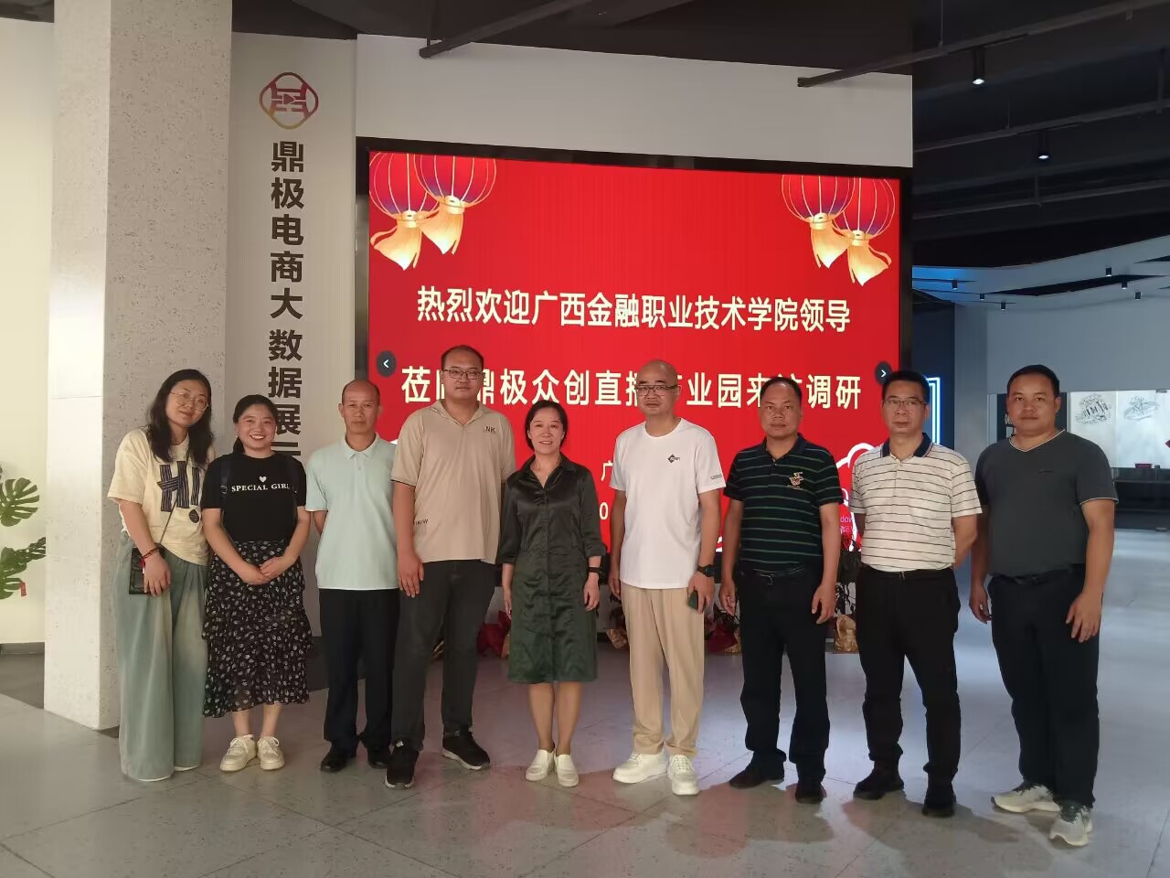 會后,莫院長帶隊實地參觀梧州鼎極電商創客孵化直播產業園。據悉,該產業園成立于2022年10月,園區孵化面積達13752平方米,圍繞梧州市電商產業孵化,分為辦公、直播、帶貨、倉儲、培訓、會務展示、物流供應鏈、產業配套八大功能區,提供創新創業孵化服務。園區可接收我校經濟管理系各專業畢業生實習就業,尤其是電子商務類專業。雙方就深化產教融合,在人才培養、課程開發、實習就業、合作服務地方經濟發展等領域開展合作展開洽談。