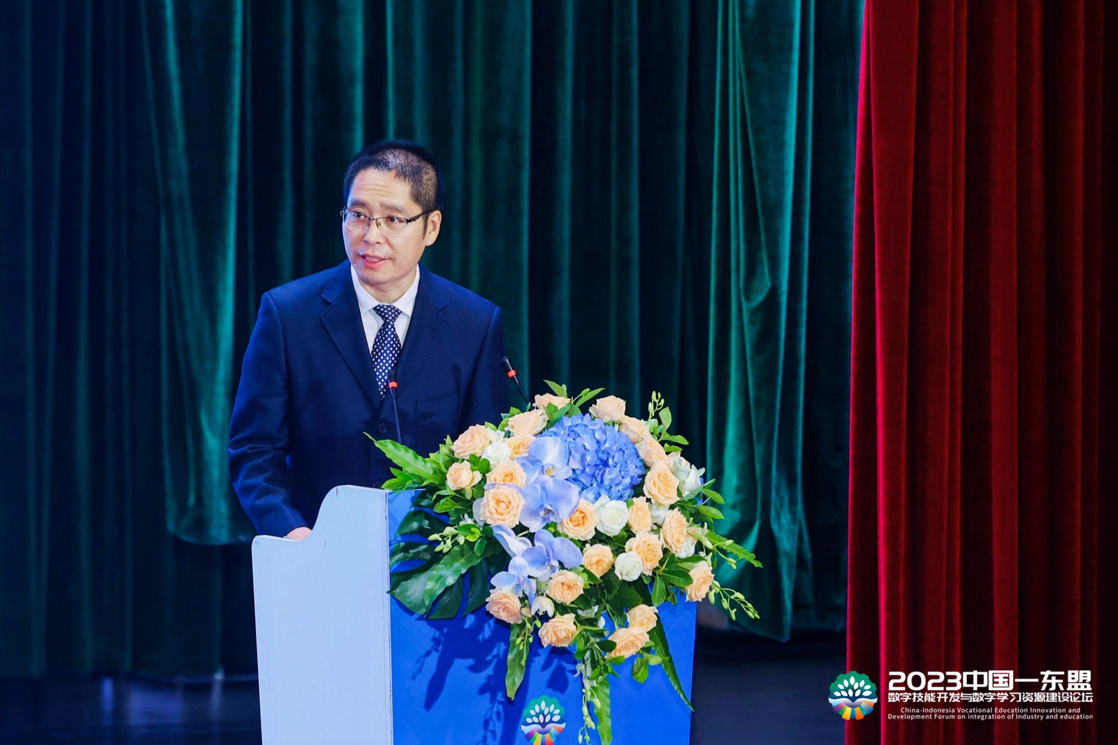 教育部職業教育發展中心副主任黃輝女士、廣西壯族自治區黨委教育工委專職副書記、教育廳黨組成員李曉勇先生、全國電子商務職業教育教學指導委員會常務副主任陸春陽先生、菲律賓職業技術教育與培訓聯合會主席奧諾弗雷·格雷戈里奧·伊諾森西奧(Onofre Gregorio Inocencio, Jr.)先生、泰國教育部職業教育委員會處長尼祿·布杉黎先生、新加坡南洋理工大學副校長黃竟朝(Ooi Kim Tiow)先生出席本次論壇并致辭。廣西金融職業技術學院黨委書記李高巖主持論壇。