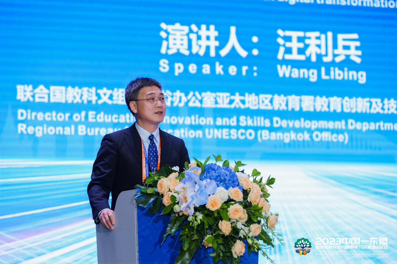 聯合國教科文組織曼谷辦公室亞太地區教育署教育創新及技能發展部主任汪利兵先生發表主旨演講