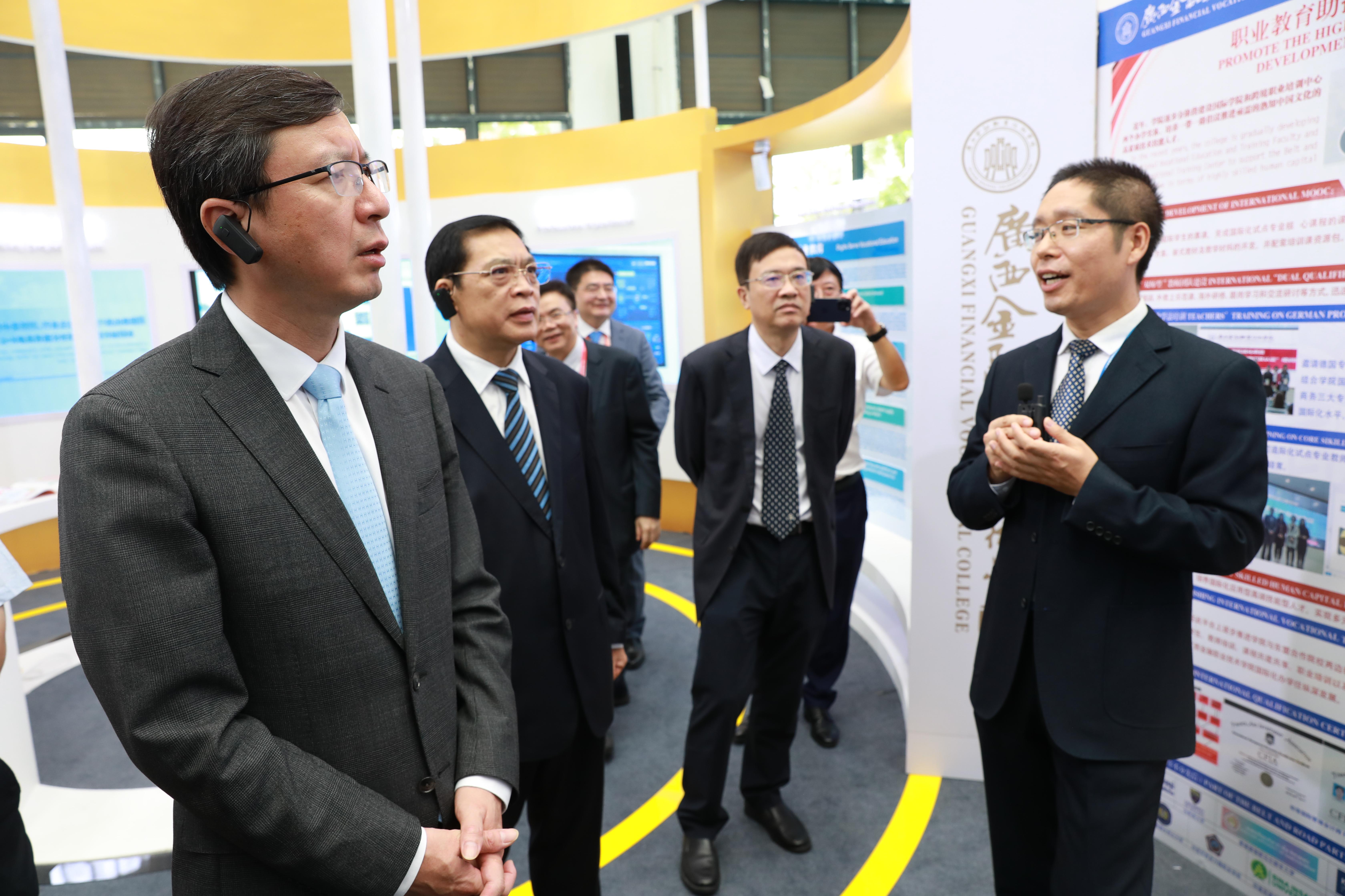 教育部副部長陳杰、自治區副主席李常官參觀我校展位
