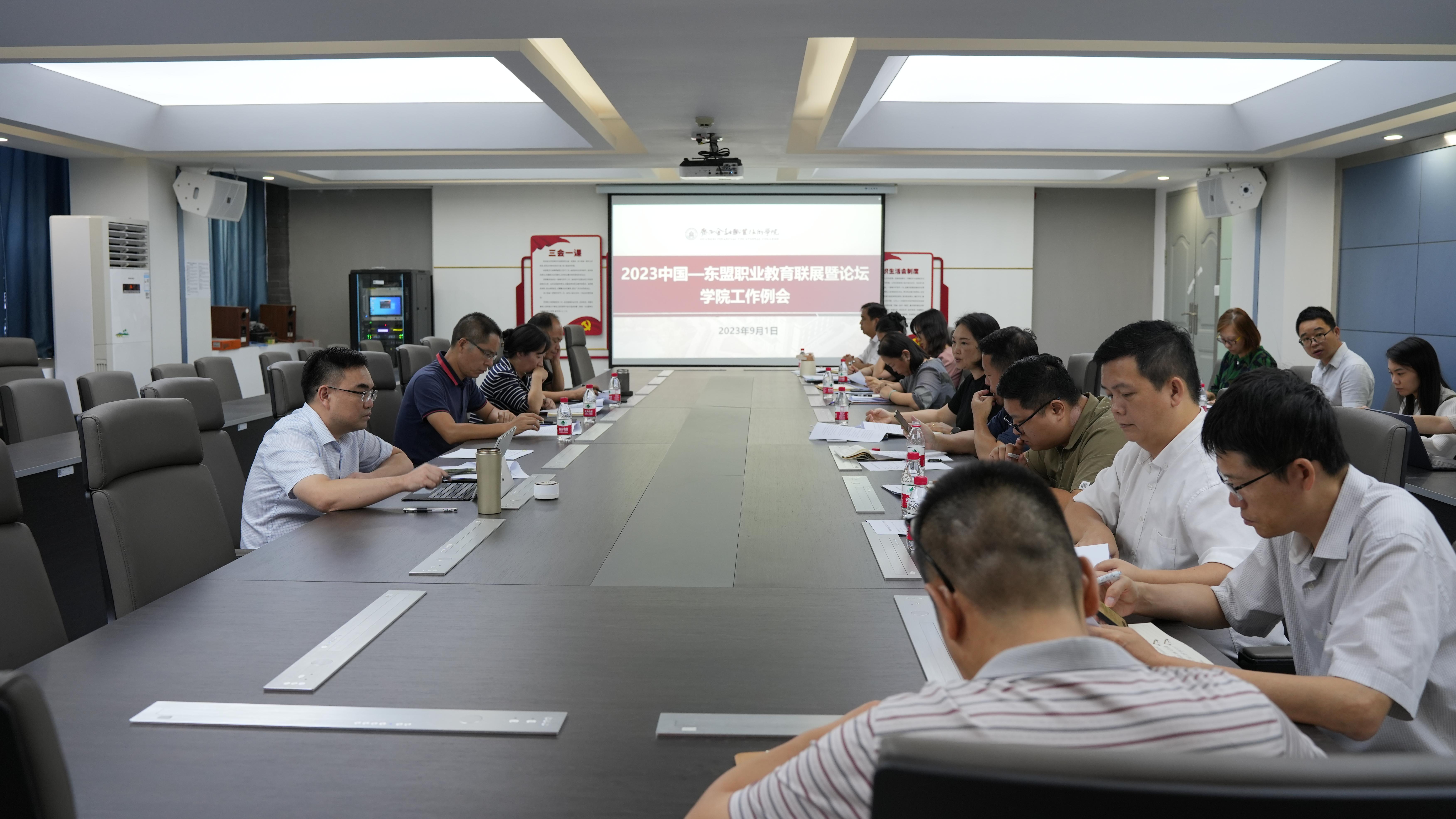 據悉,為確保我校在此次聯展暨論壇期間承辦的各項工作順利完成,我校于7月5日印發《廣西金融職業技術學院參加2023中國-東盟職業教育合作發展大會工作方案》,同時成立工作領導小組,黨委書記李高巖、校長莫海燕為組長。學校領導小組下設辦公室和8個專項工作組,推進各項工作有序進行。自學校領導小組設立至聯展暨論壇開幕,學校以線上或線下的形式共計召開5次工作例會,各工作組匯報工作進展,并對面臨的困難予以協調解決。9月9日,召開接待工作動員會暨培訓會,學院領導以及參與此次接待工作的教職工、學生志愿者參加會議,進一步提升我校接待工作水平。