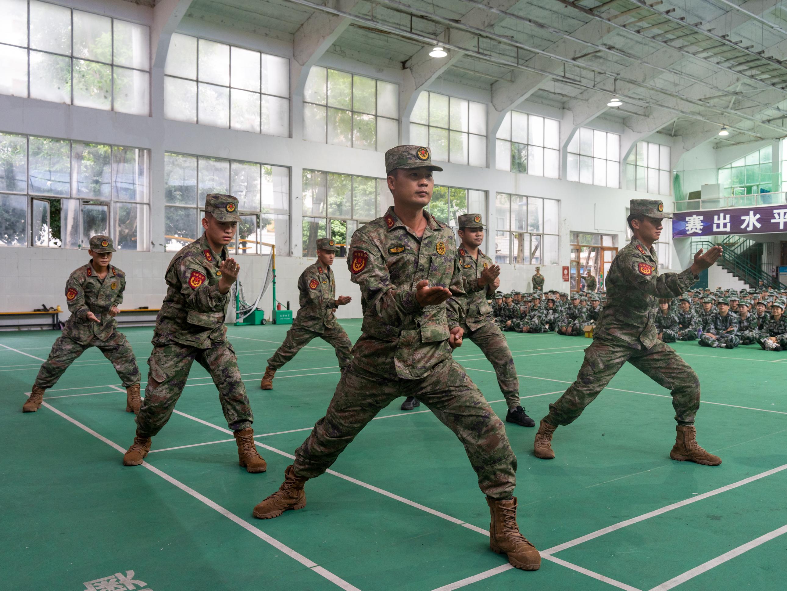 軍訓團教官代表進行基本軍事科目的匯報演示