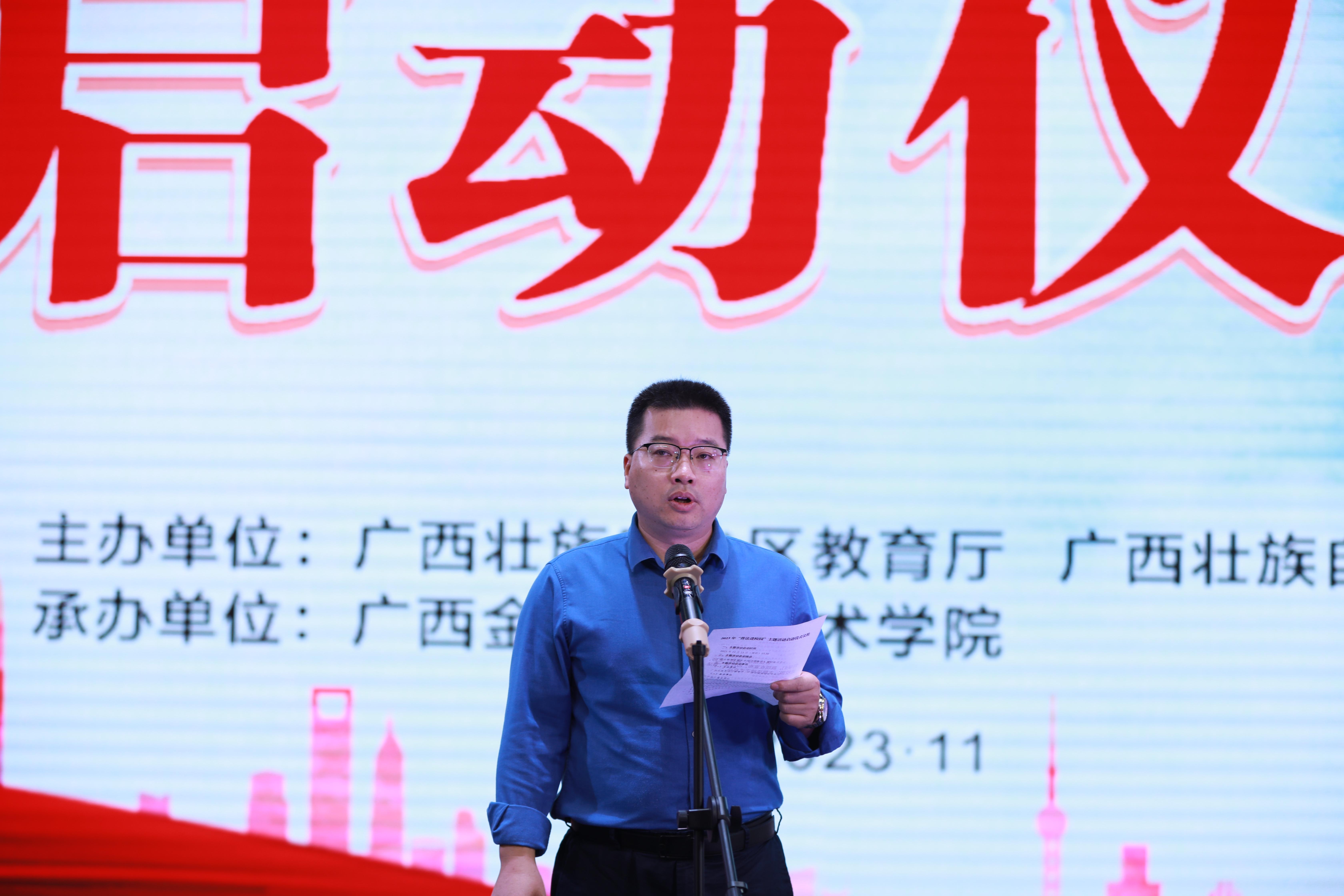 為全面學習貫徹黨的二十大精神,營造尊法、學法、守法、用法的良好法治濃厚氛圍,推動青少年法治教育常態化長效化,11月23日下午,由自治區教育廳、自治區司法廳主辦,廣西廣播電視臺承辦、廣西職業技術學院等10所中高職學校協辦的2023年“普法進校園”主題活動啟動儀式在我校西校區國際會議中心成功舉辦。自治區教育廳政策法規處處長李輝善、自治區司法廳普法與依法治理處處長陸建武、廣西廣播電視臺青少年普法欄目組人員、協辦單位學校代表等出席啟動儀式。