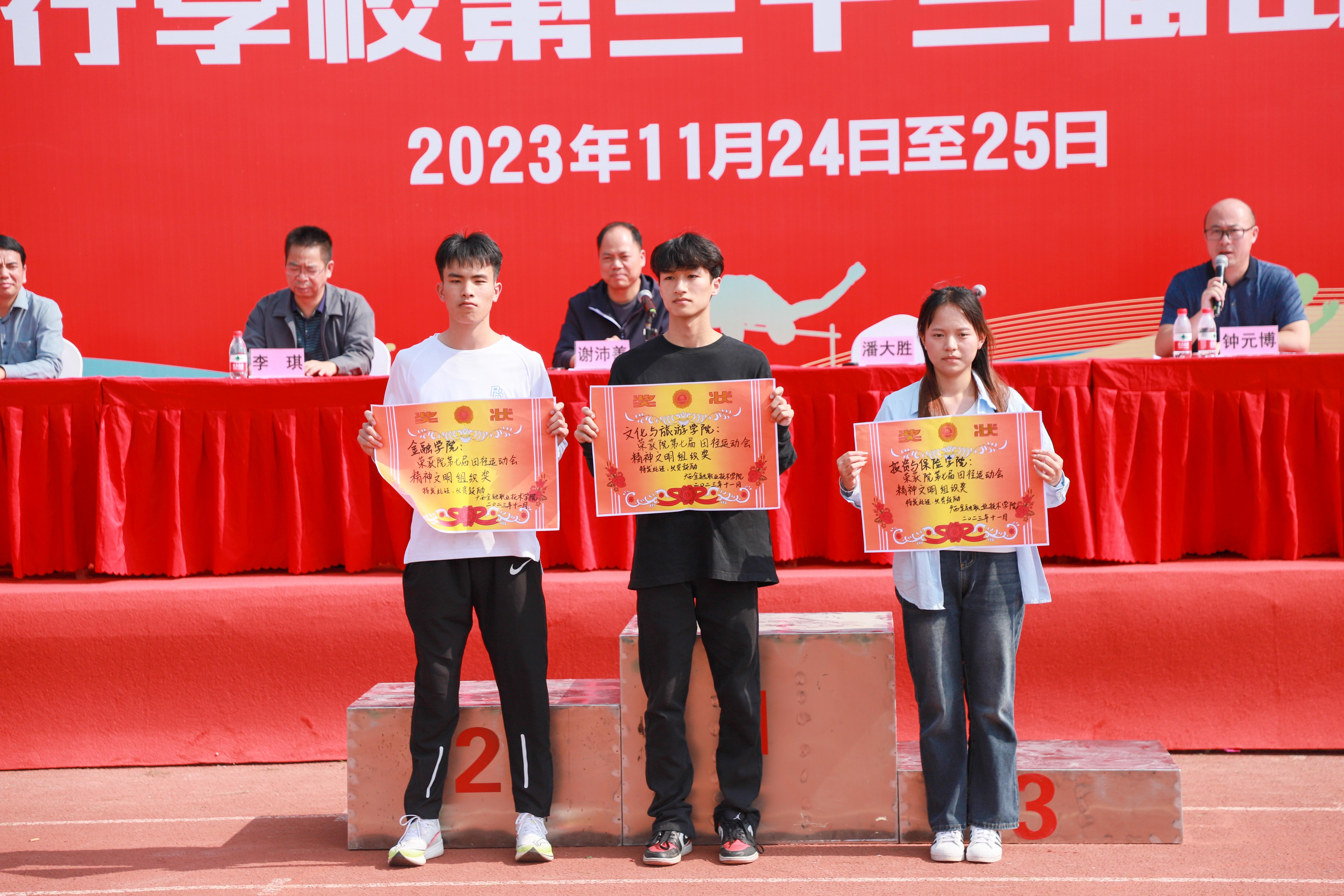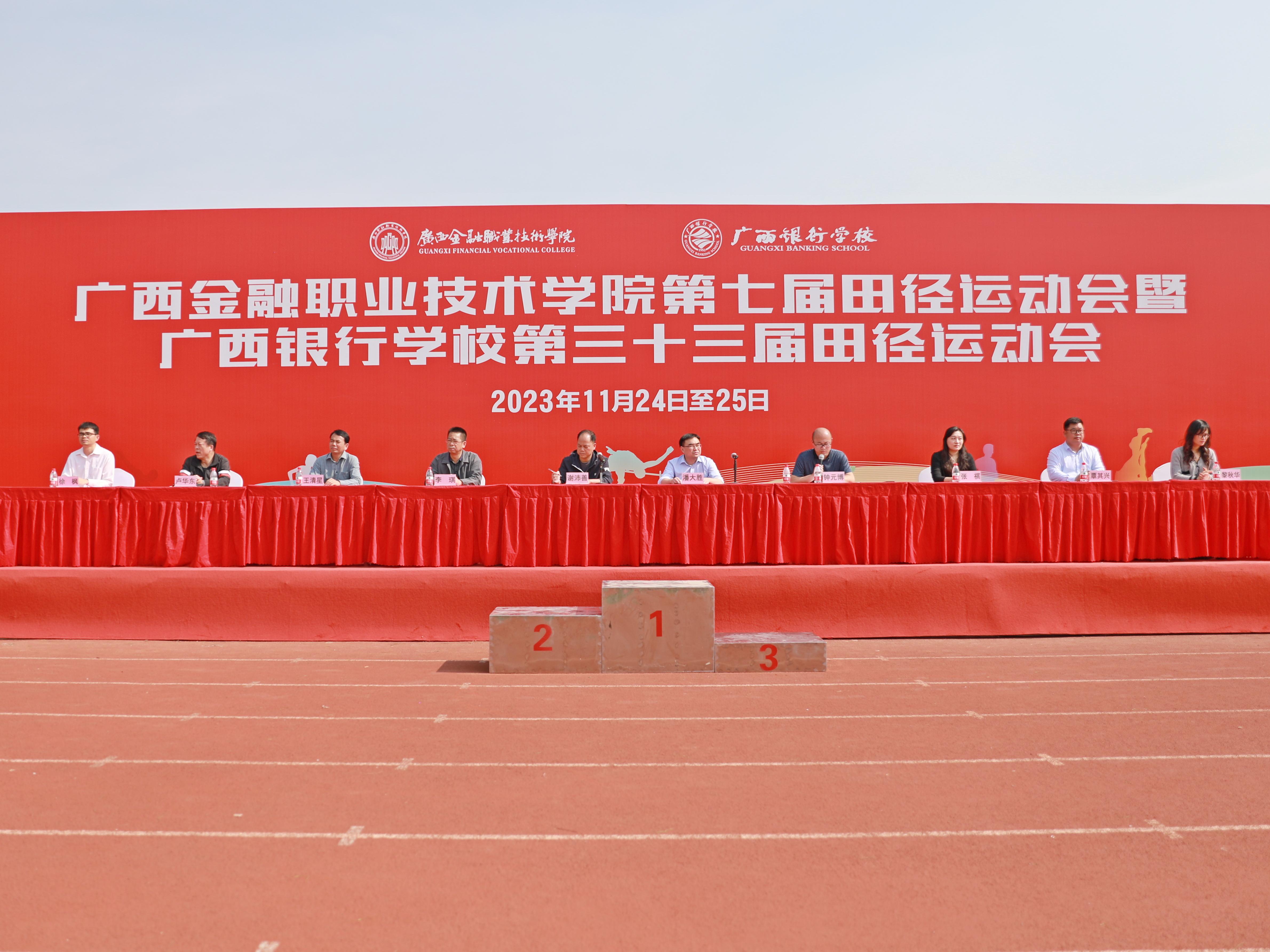 11月25日,經(jīng)過一天半運動員們的激烈拼搏,裁判員的公正判決及全體工作人員的共同努力,廣西金融職業(yè)技術(shù)學院第七屆暨廣西銀行學校第三十三屆田徑運動會順利地完成了各項比賽項目,圓滿落下帷幕。學校副校長謝沛善、潘大勝、教務科研處副處長李琪以及教學系部的主要負責同志參加閉幕式。閉幕式由大賽總裁判長,公共基礎部副主任鐘元博主持。