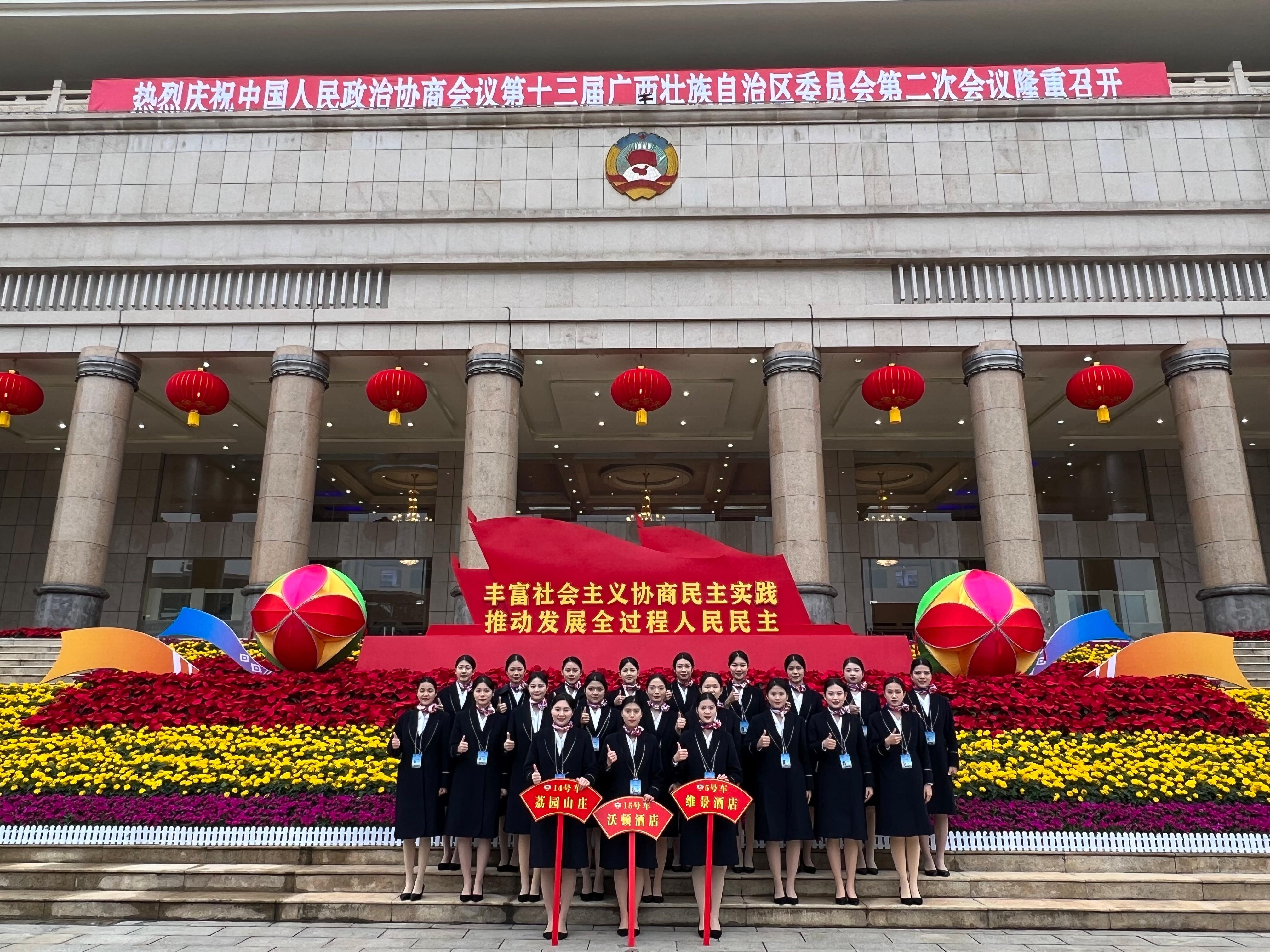 1月21日至25日,我校學生分別在荔園山莊、荔園山莊維景酒店、沃頓酒店、裕達酒店提供會議用車的引導與禮賓服務。會議期間,我校學生承擔了發放座位表、引導政協委員入場等工作,他們嚴謹認真、態度積極,展示出飽滿的精神狀態和專業的服務水平。
