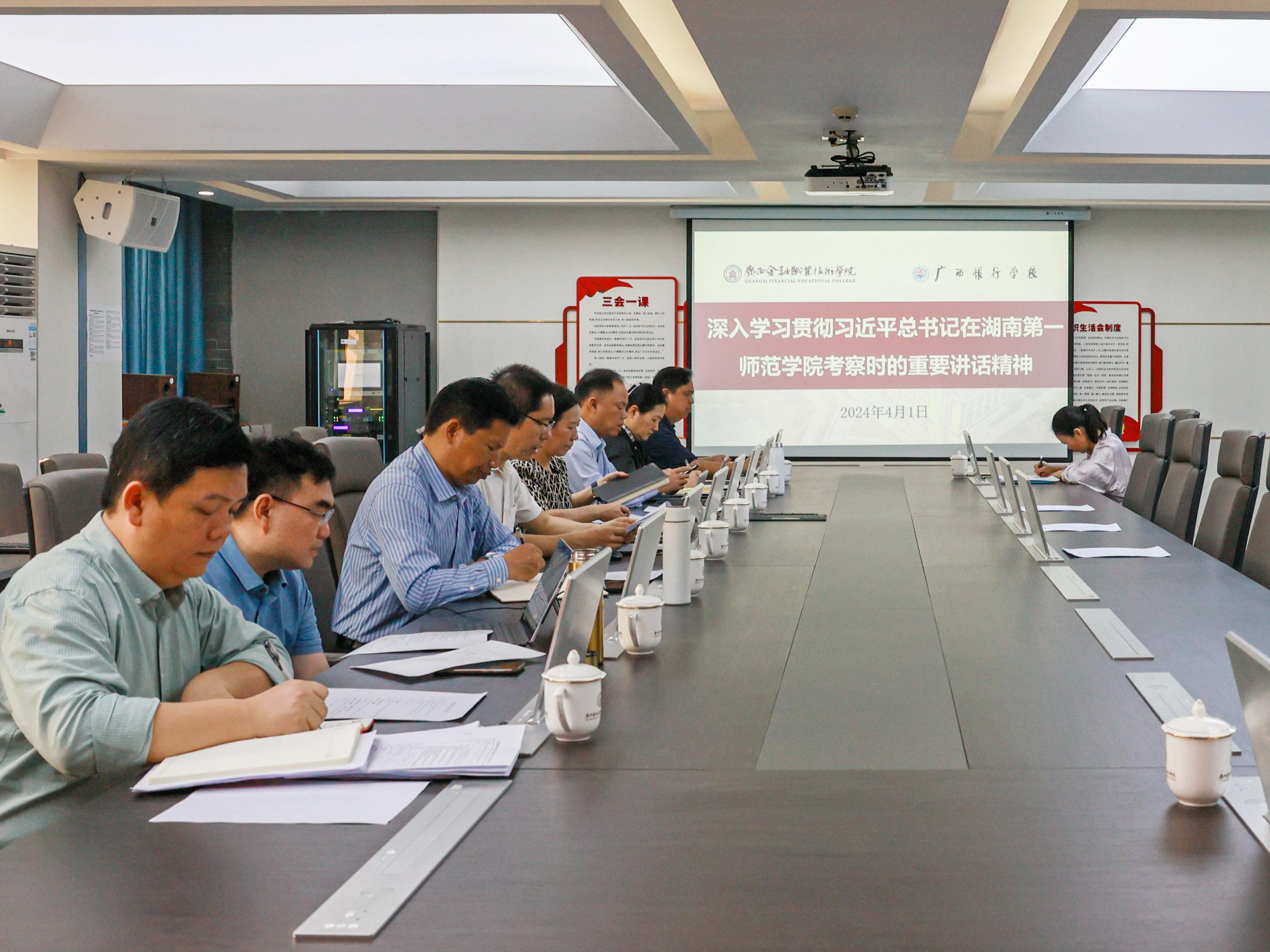 4月1日上午,我校在西校區(qū)512會(huì)議室召開黨委擴(kuò)大會(huì)議,專題學(xué)習(xí)習(xí)近平總書記在湖南第一師范學(xué)院考察時(shí)的重要講話精神。學(xué)校領(lǐng)導(dǎo)、黨委委員、黨委宣傳部、組織人事處、紀(jì)檢監(jiān)察室主要負(fù)責(zé)人參加會(huì)議。黨委書記李高巖主持會(huì)議并講話。