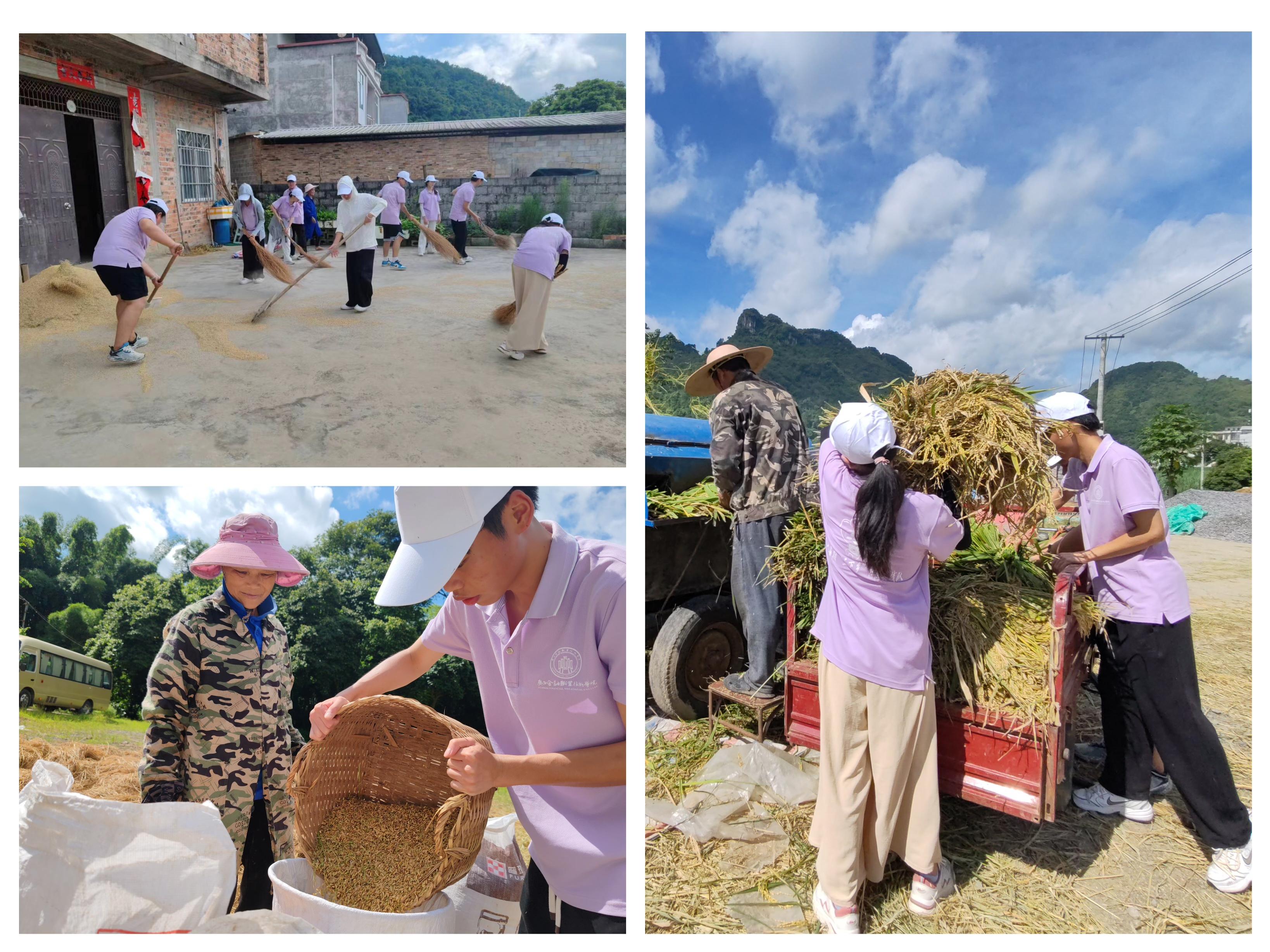 7月14日,實踐團在欖圩鄉斌屯進行助農志愿服務實踐活動。為支援斌屯村缺少勞動力的農戶家庭搶收稻谷,充分發揮青年學子的責任擔當精神。幫助農戶水稻脫粒和收曬稻谷,見證了師生合力踐行習近平總書記對青年的囑托,為鄉村振興貢獻青春力量,讓青春在為祖國、為人民、為民族、為人類的奉獻中煥發出更加絢麗的光彩!