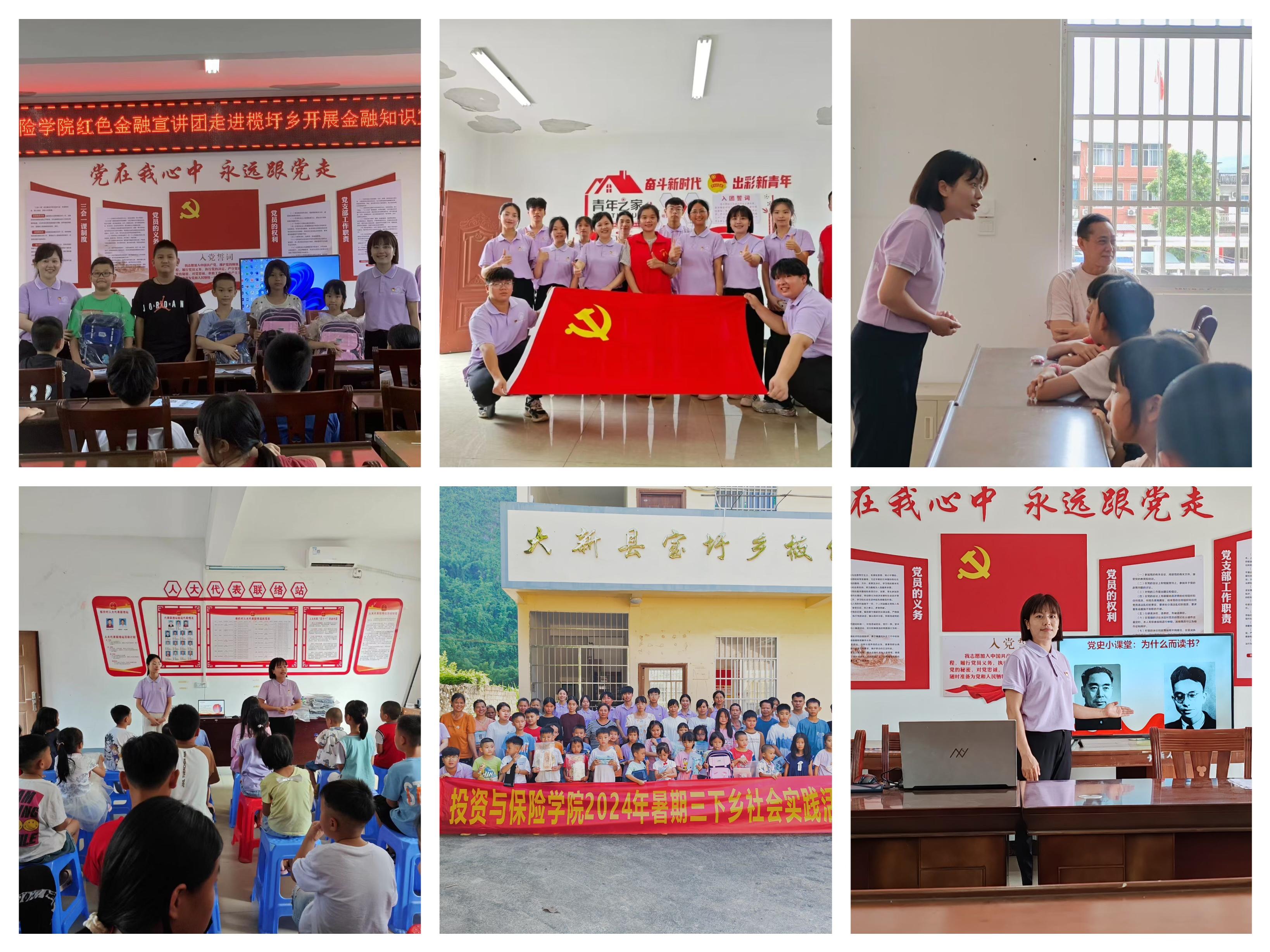 為深入學習宣傳習近平新時代中國特色社會主義思想,貫徹落實習近平總書記關于“大思政課”的重要指示批示精神,推動思政小課堂與社會大課堂相結合。7月13日-18日,在我校潘瑞蘭老師的指導下,投資與保險學院“金保助夢”實踐團深入崇左大新縣欖圩鄉、寶圩鄉開展2024年大學生暑期文化科技衛生“三下鄉”社會實踐活動,以“行走的思政課”為引領,讓學生在實踐中受教育、長才干、作貢獻,為鄉村振興貢獻青春力量。