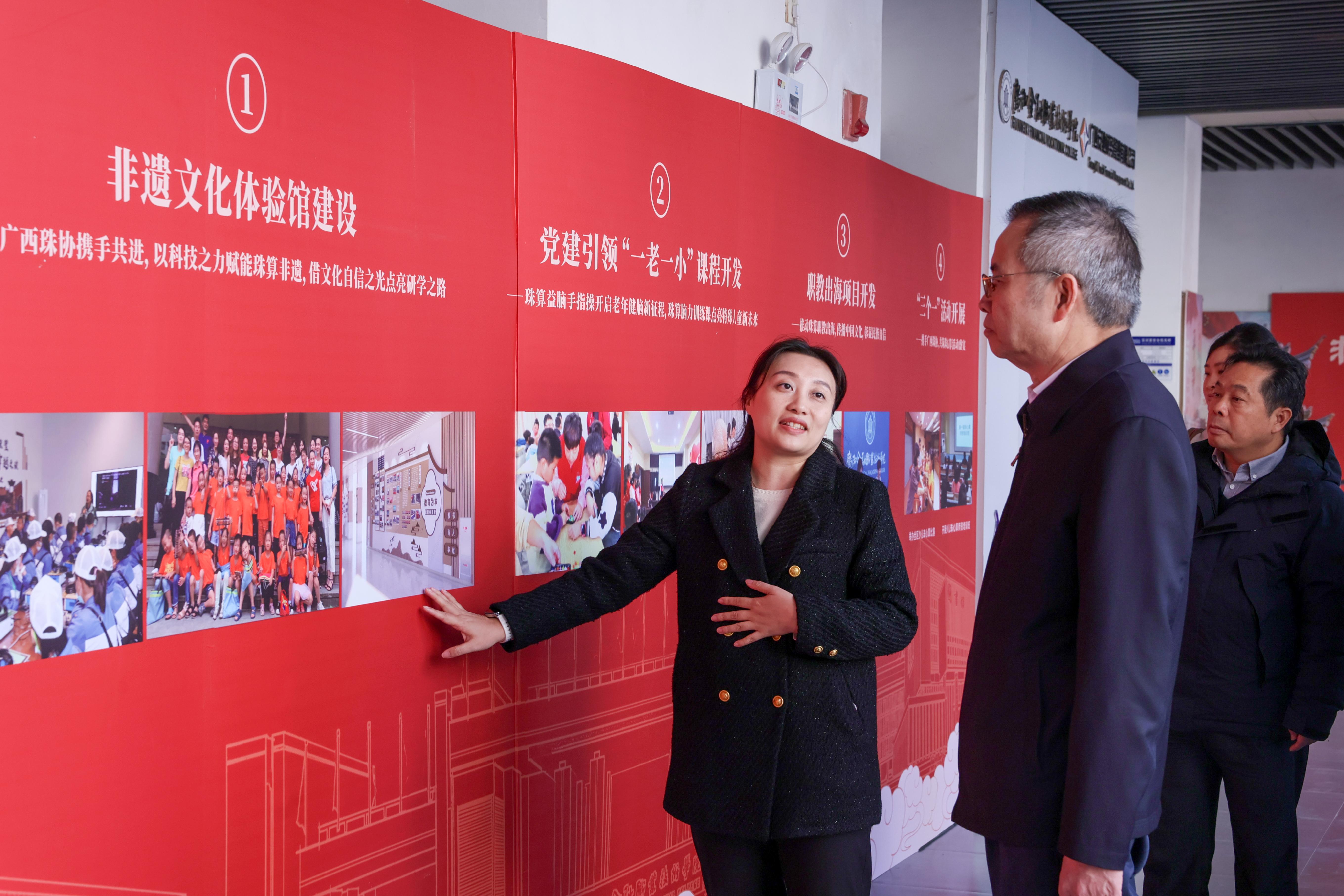 我校校長莫海燕、副校長謝沛善、副校長潘大勝陪同調(diào)研組參觀了學(xué)校的辦學(xué)成果。校長莫海燕向調(diào)研組介紹了我校的基本情況,副校長謝沛善闡述了我校在廣西高水平會計(jì)專業(yè)群建設(shè)的豐碩成果。會計(jì)學(xué)院黨總支書記、院長張祺分享了學(xué)院珠算匠人工作室的創(chuàng)新實(shí)踐成果,以及傳承珠算非遺文化的未來規(guī)劃。