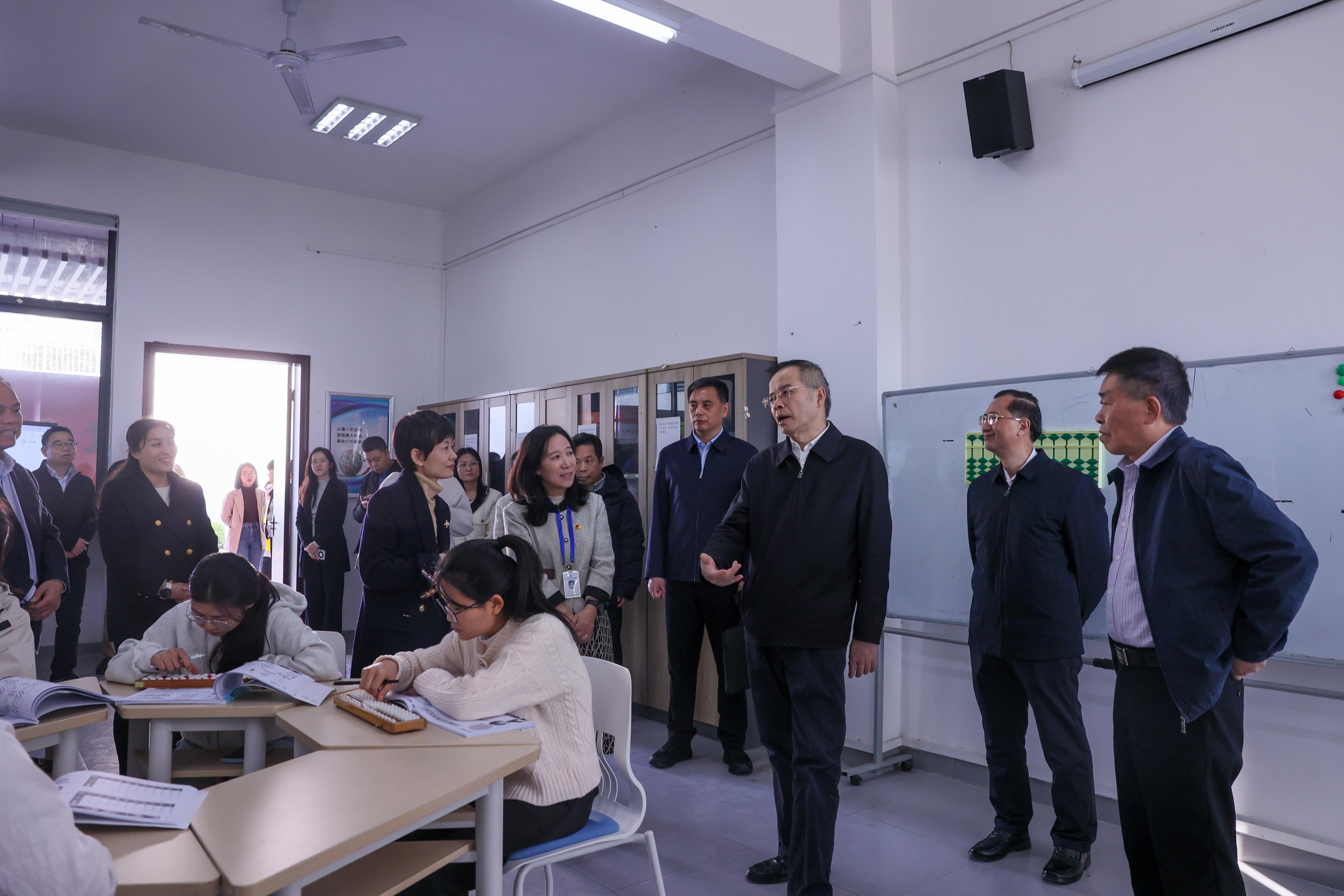 2024年12月18日,中國珠算心算協(xié)會會長歐文漢、常務(wù)副會長程北平、秘書長趙相翼、副秘書長閆曉茗、秘書時寶榮一行五人,在廣西壯族自治區(qū)財(cái)政廳黨組成員、副廳長陳海濤,會計(jì)管理處相關(guān)負(fù)責(zé)人、廣西珠算心算協(xié)會秘書長等陪同下,到訪我校開展關(guān)于珠算文化非遺傳承和珠心算教育教學(xué)推廣普及情況的實(shí)地調(diào)研。