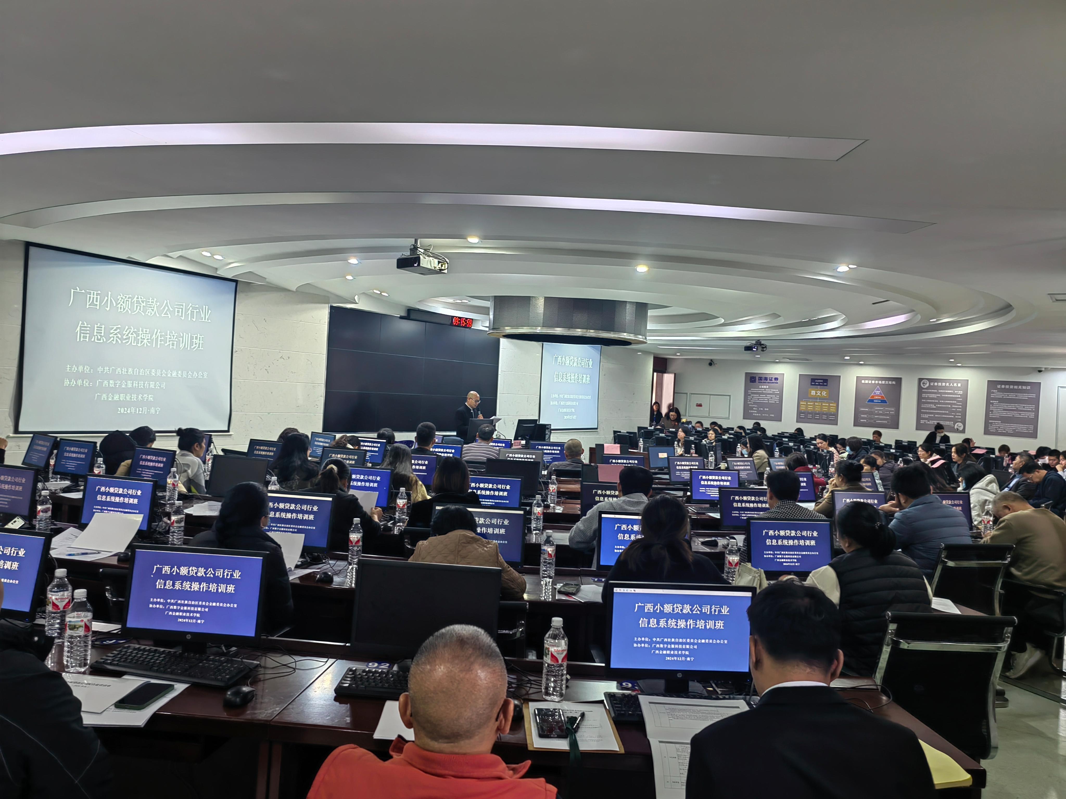 在培訓班上,自治區黨委金融辦監管一處通報了廣西小額貸款公司行業非現場監管要求以及行業信息系統建設使用情況;上海安碩信息技術股份有限公司的專家講解了廣西小額貸款公司行業監管與業務系統的操作技能并指導學員上機實操。