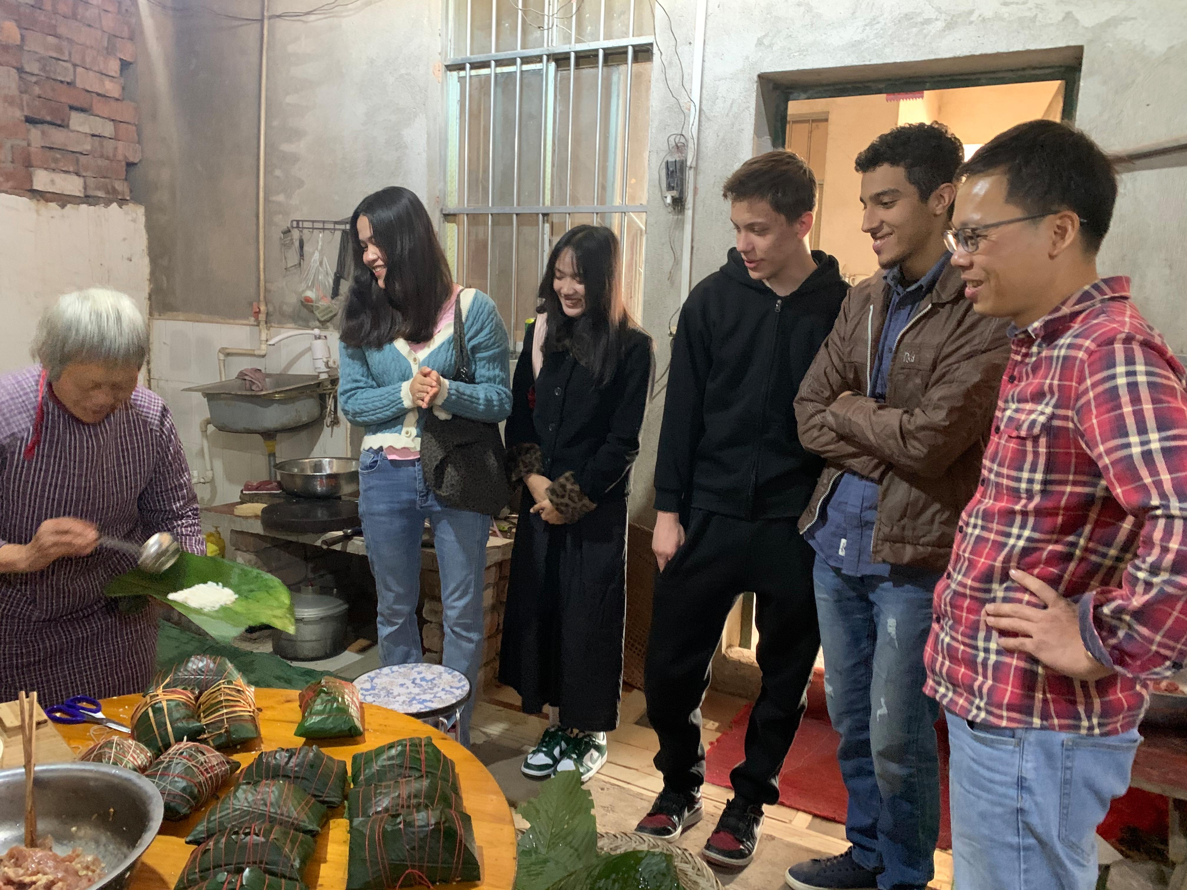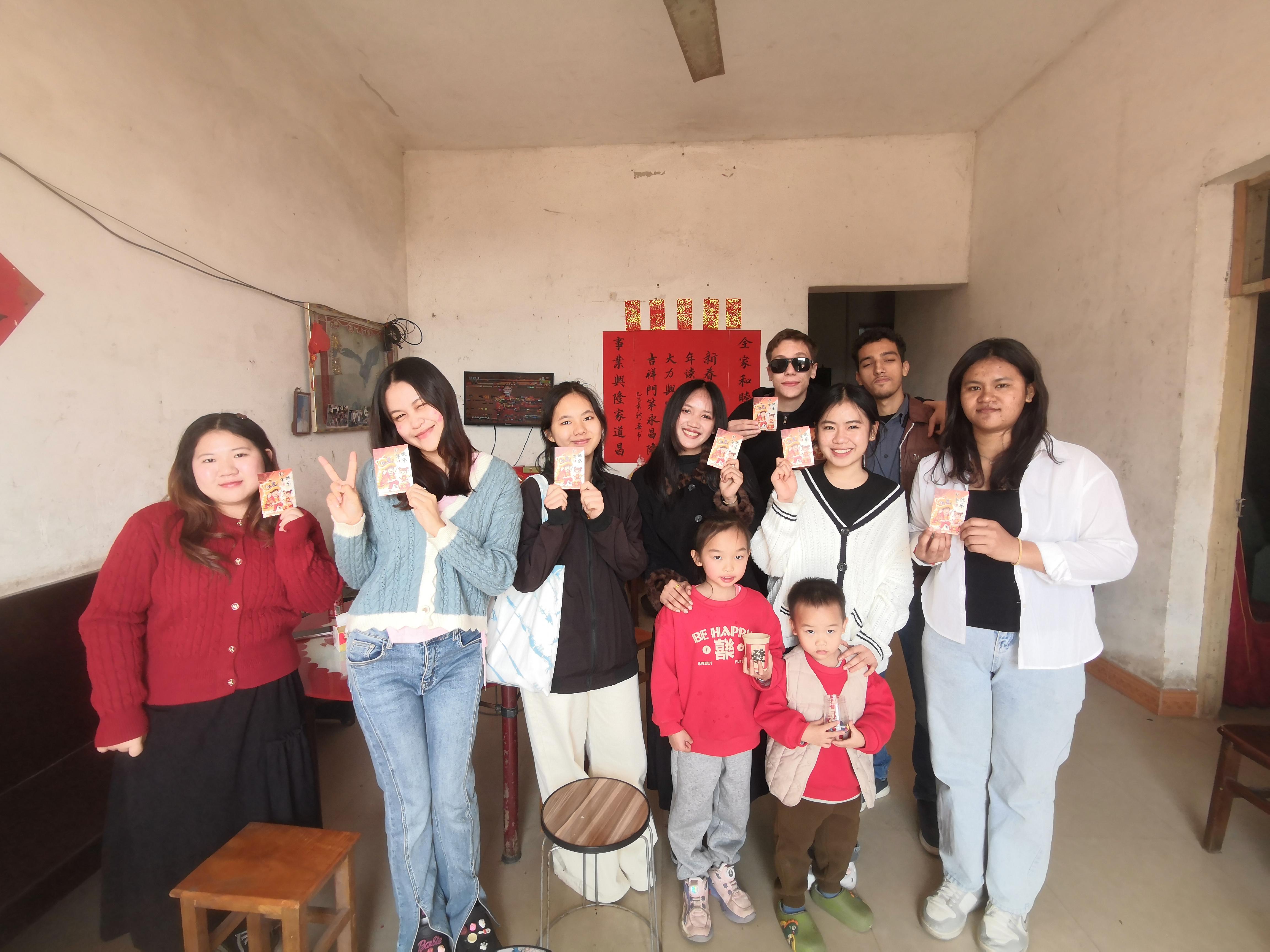 “爆竹聲中一歲除,春風送暖入屠蘇。”大年初一、初二,在數字貿易學院(工商管理學院)教師黃富班的帶領下,國際學生們前往南寧市邕寧區那樓鎮壇垌村,與黃富班的家人一同歡度新春佳節。在那里,國際學生們學習包粽子,貼春聯,放煙花爆竹,享春節特色美食,感受濃厚的春節氛圍,體驗中華民族幾千年的傳統文化。