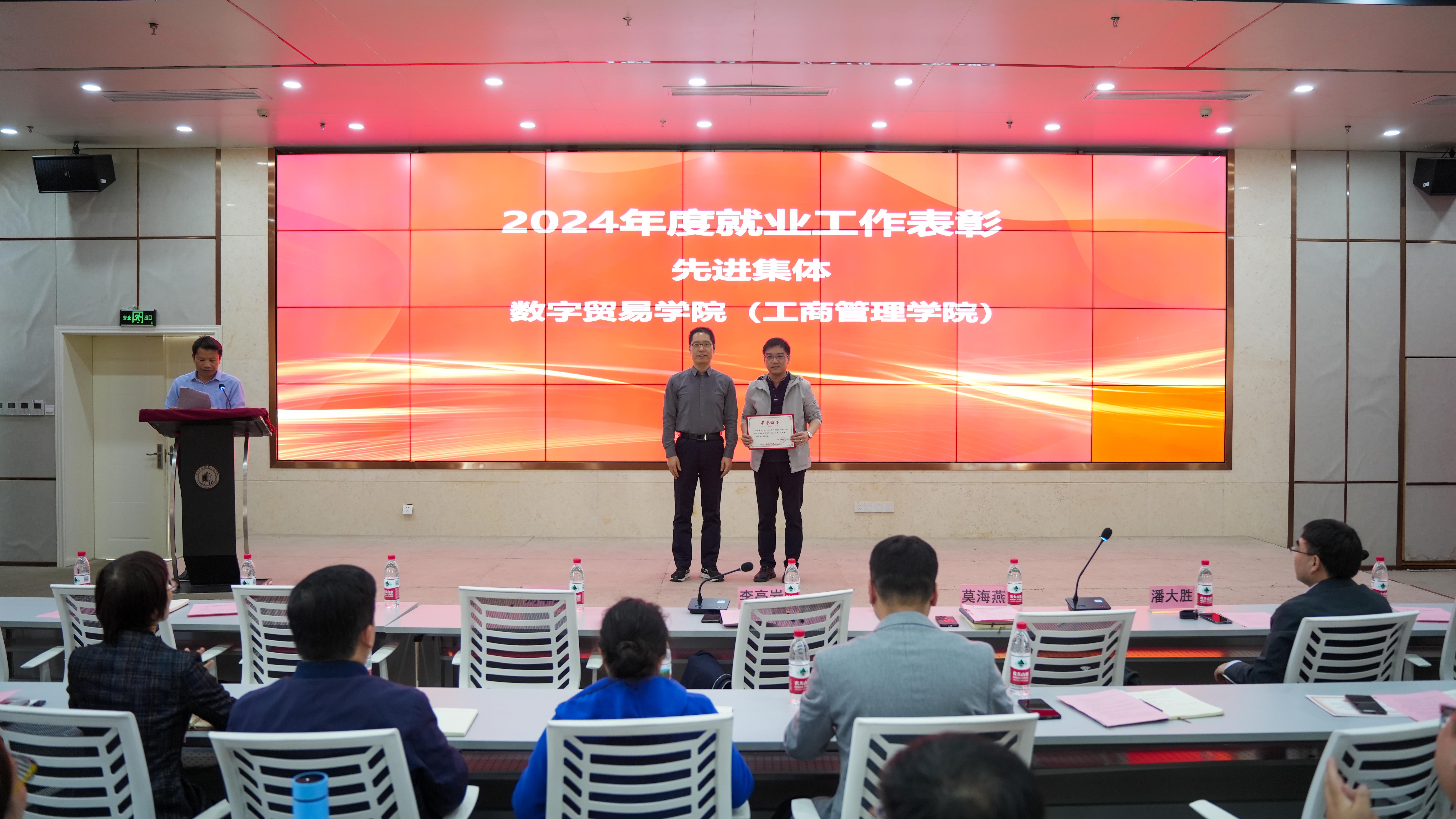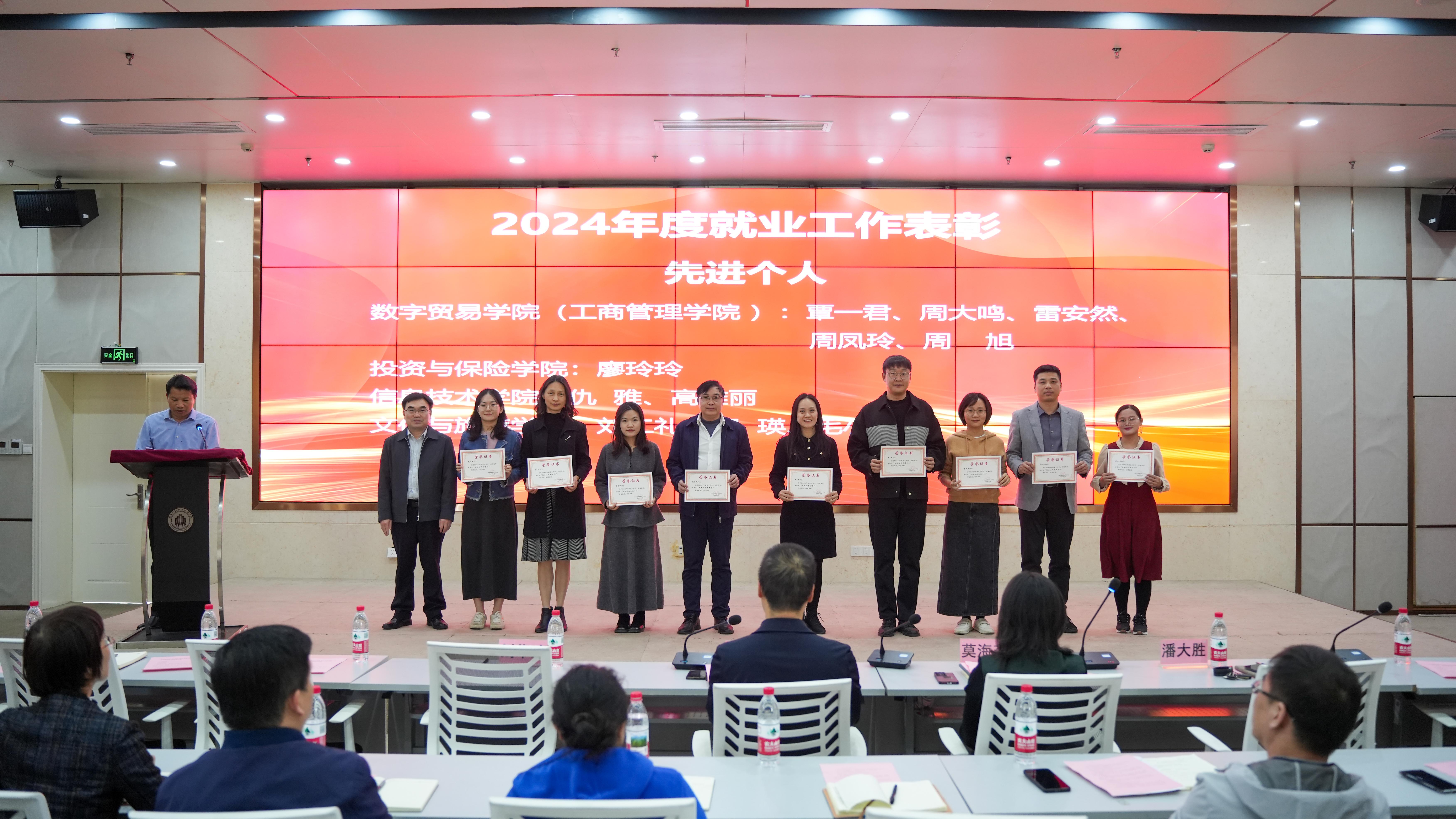 2024年度就業工作先進集體數字貿易學院(工商管理學院)院長黃濤和2024年度就業工作先進個人會計學院專職輔導員覃耀堅作交流發言,分享了各自在就業工作中的經驗與心得。