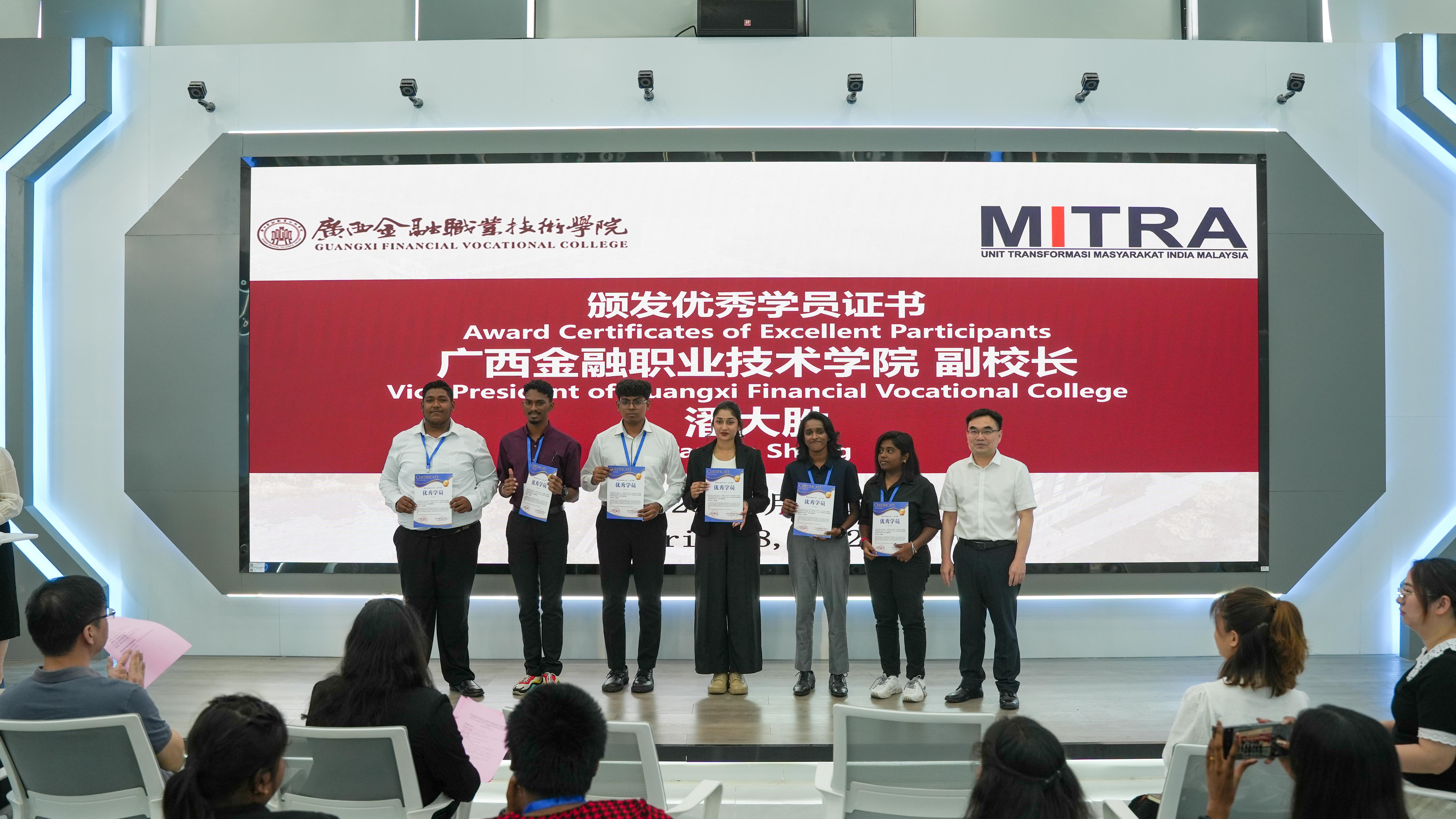 馬來西亞學生們紛紛表示,在廣西金融職業技術學院的這段時光,不僅學到了豐富的知識和技能,還真切感受到了學校師生的熱情友好,領略到了中華文化的博大精深。優秀學員代表約加韋蘭?卡蒂雷桑發言,他表示將把這段美好的經歷銘記在心,希望未來能有更多的機會參與交流活動,進一步加深中馬之間的友誼。