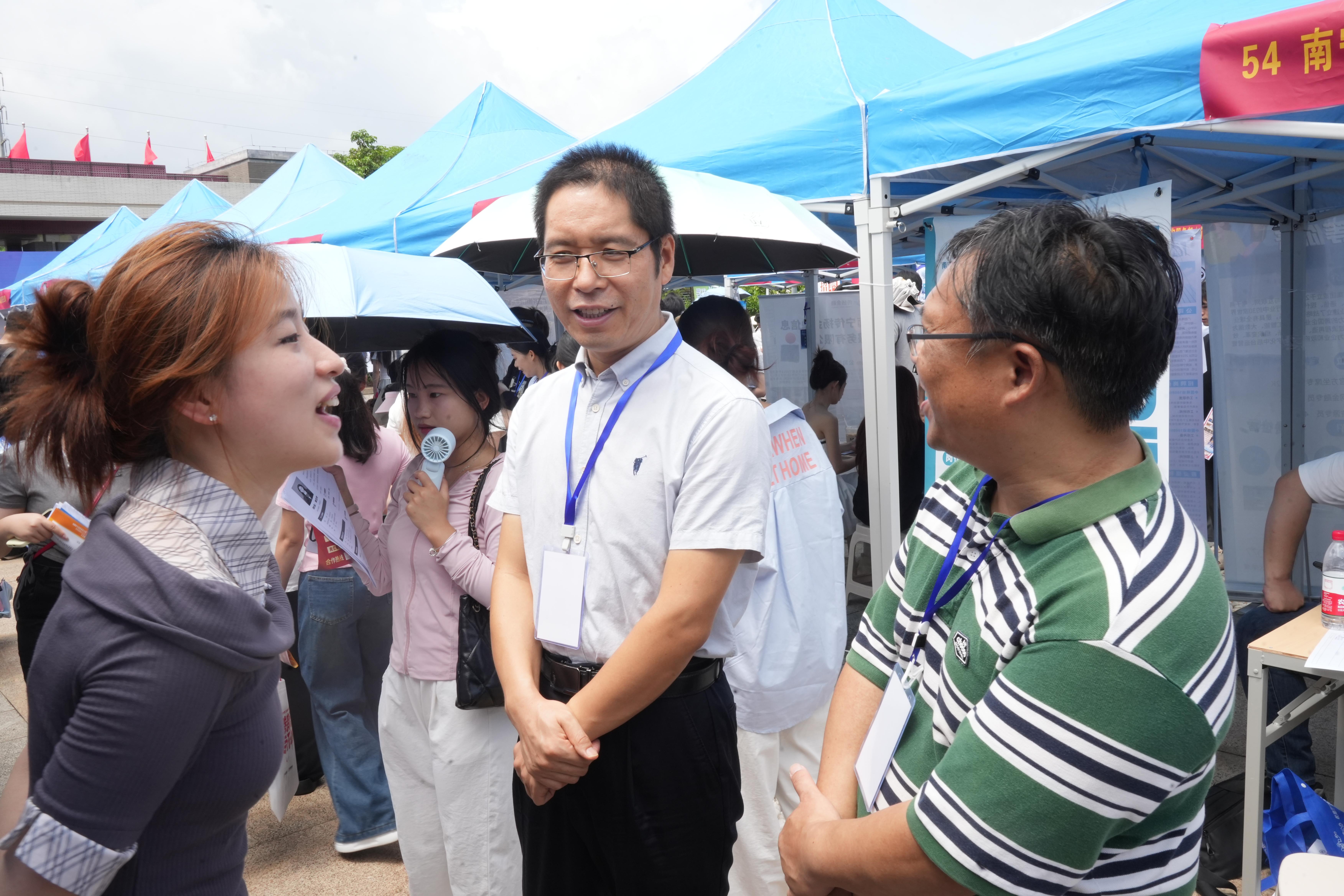6月28日,廣西金融職業技術學院舉辦2025屆畢業生就業雙選會暨2026屆畢業生實習專場招聘會,黨委書記李高巖、校長莫海燕、黨委副書記、紀委書記劉華政深入現場指導工作。