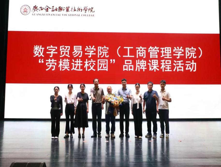 廣西電子商務協會黨總支書記、執行會長張學清結合當前數字經濟背景下電商行業的發展趨勢,指出數字貿易領域正迎來廣闊機遇,同時也對人才的專業素養與實踐能力提出更高要求。他表示,勞模黃忠文的奮斗故事,是勞動精神的生動寫照。希望同學們以勞模為榜樣,將專業學習與行業需求緊密結合,主動參與實踐鍛煉,為電商領域發展注入新活力。