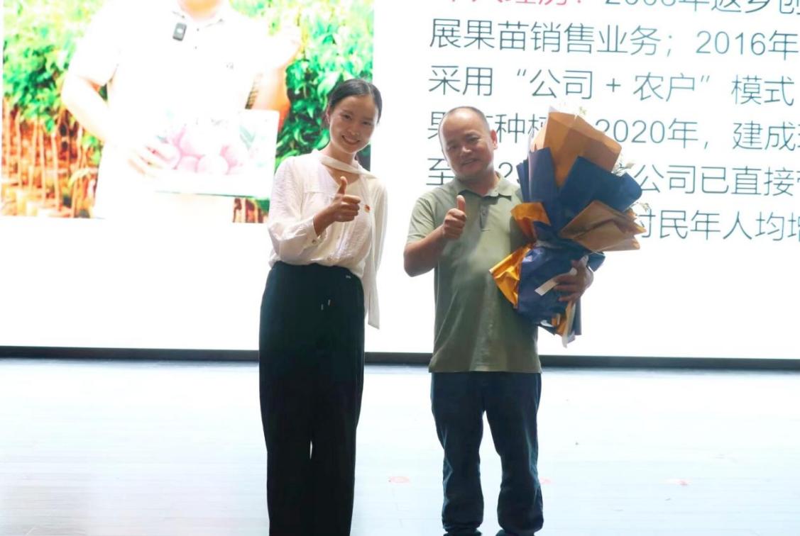 廣西壯族自治區勞動模范黃忠文結合自身豐富的創業經歷與顯著成果,向在場師生分享了農業領域創業的實踐心得與寶貴經驗,為農村電子商務等的學生提供了鮮活指引。他結合數字貿易在農業領域的應用實踐,多次強調專業知識的重要性,勉勵在場學生“既要扎實掌握電商運營、市場營銷等專業技能,也要培養吃苦耐勞的品質,為鄉村振興貢獻青春力量”,用樸實的話語表達出對青年學子的深深期許。