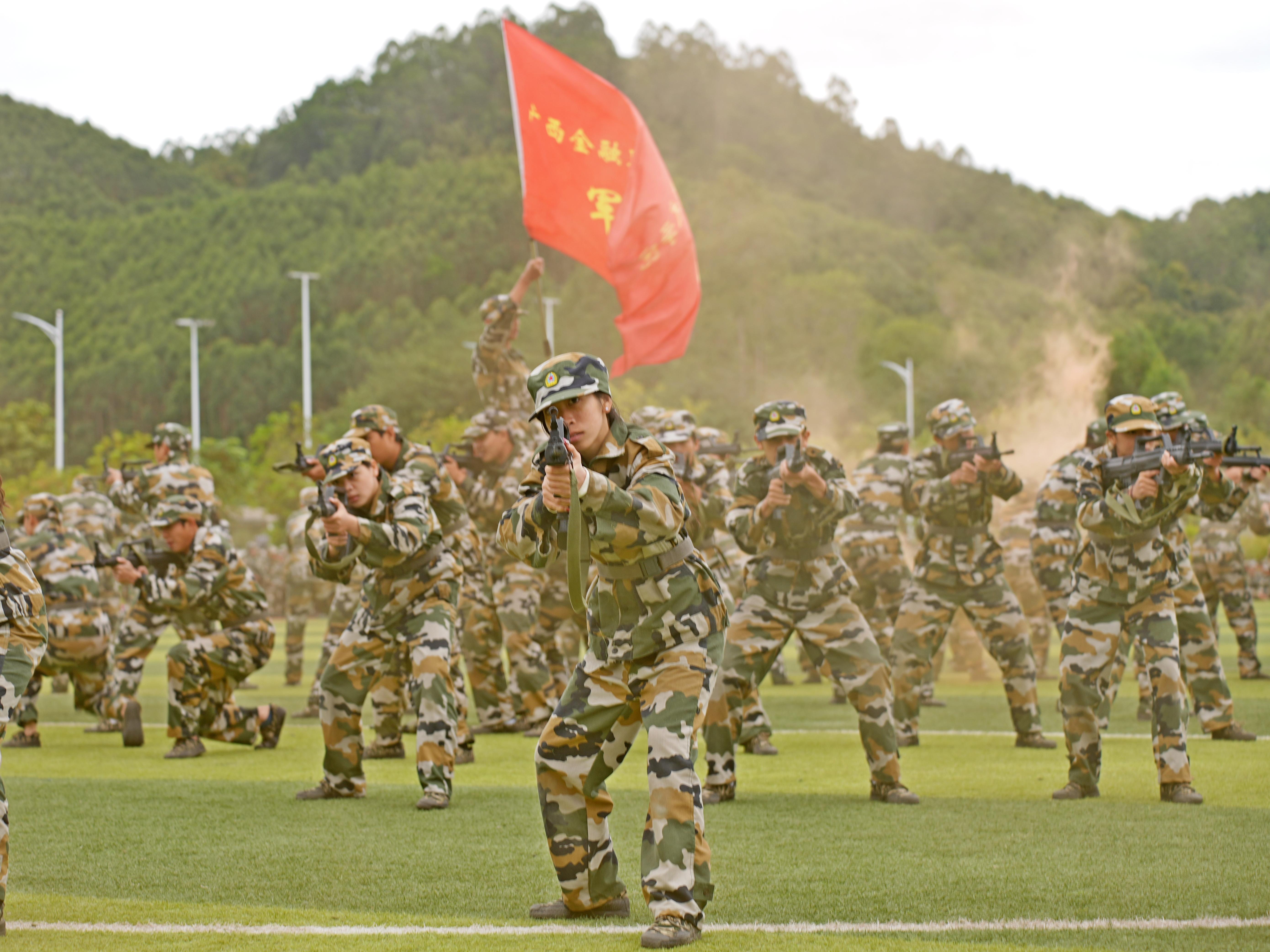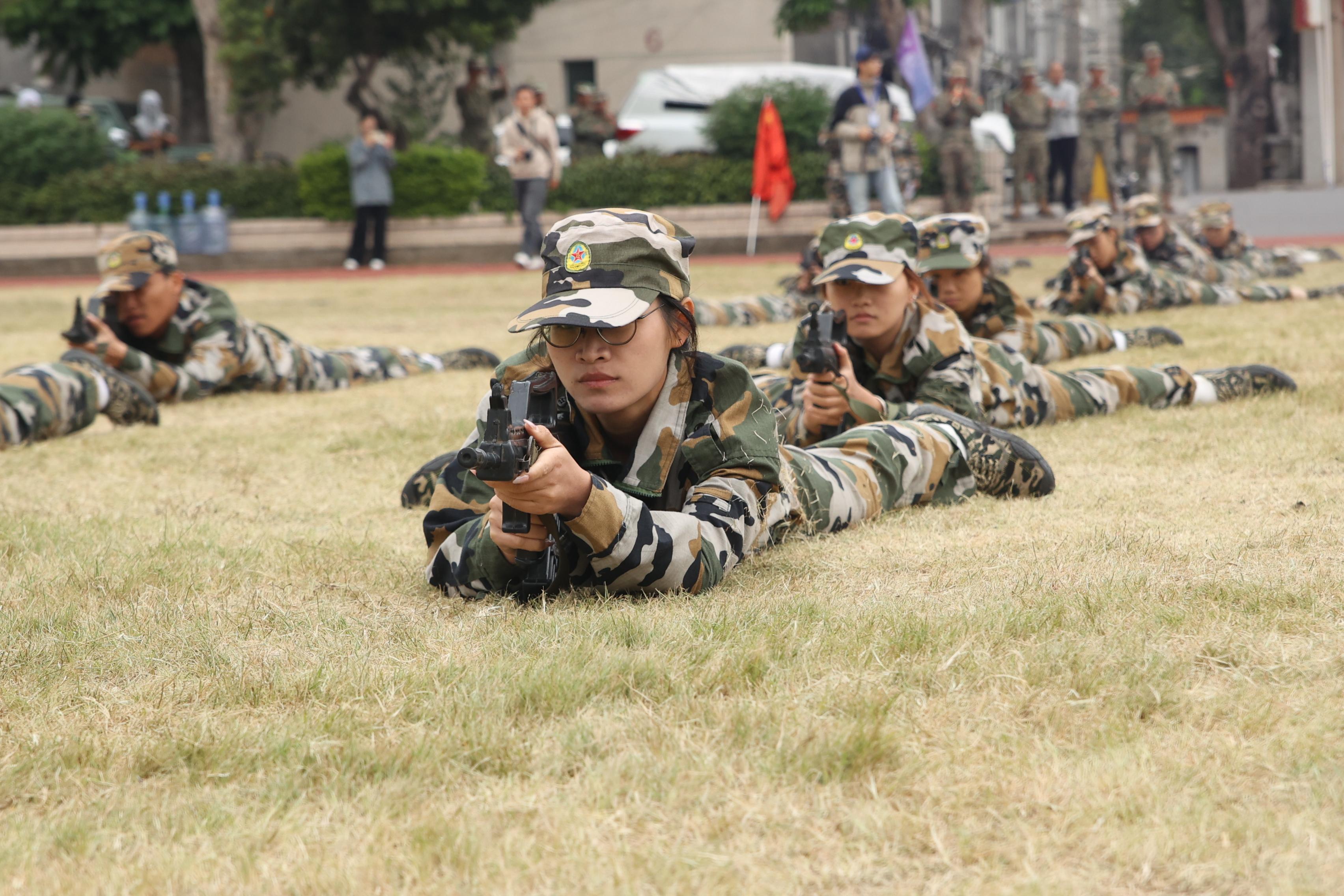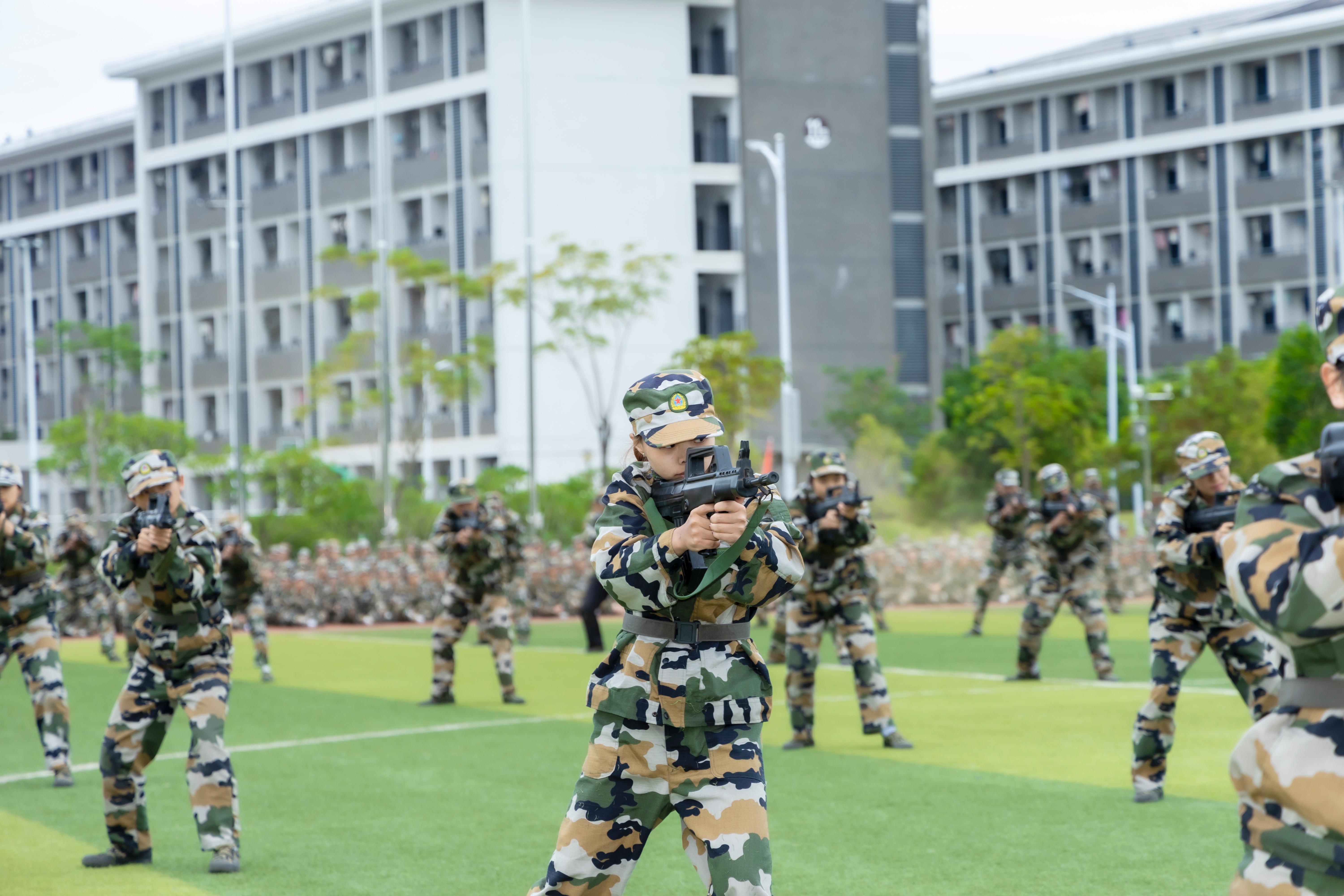 隨后各方隊依次展開軍事技能匯報表演:分列式行進氣勢如虹,擒敵拳演練剛勁有力,刺殺操展示殺氣凜凜,匕首操匯演靈動迅猛,捕俘拳演示招招制敵,警棍盾牌操表演協同默契,戰術科目實景模擬更將現場氣氛推向高潮。參訓學生以堅韌的意志、凝聚力量的口號、彰顯紀律意識的整齊隊列,以及踏響拼搏節拍的鏗鏘步伐,全面展示了軍訓成果,更生動詮釋了這場青春洗禮的深層意義——它讓金院學子在汗水中淬煉了品格,在協作中凝聚了力量,在堅持中涵養了斗志,最終以飽滿的熱情與昂揚的姿態,為大學生活注入了永不褪色的奮斗底色。